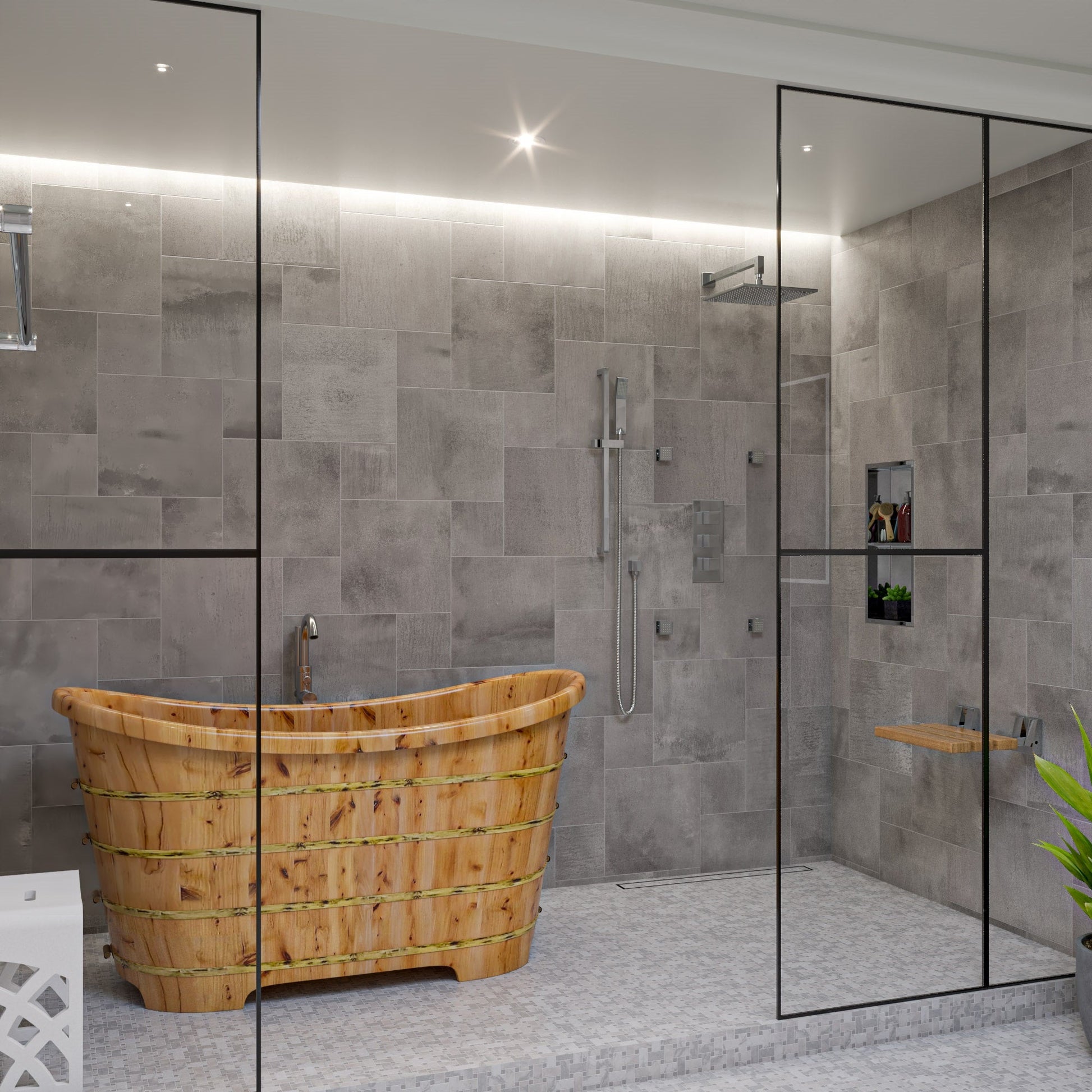 Turn any bathroom into an eye catching spectacular with a high end wooden tub. The perfect addition to any log style cabin or winter home. Nothing feels better than crawling into a tub made of wood and filled with steaming hot water. Just lay back and relax, you're in a classic wooden tub.