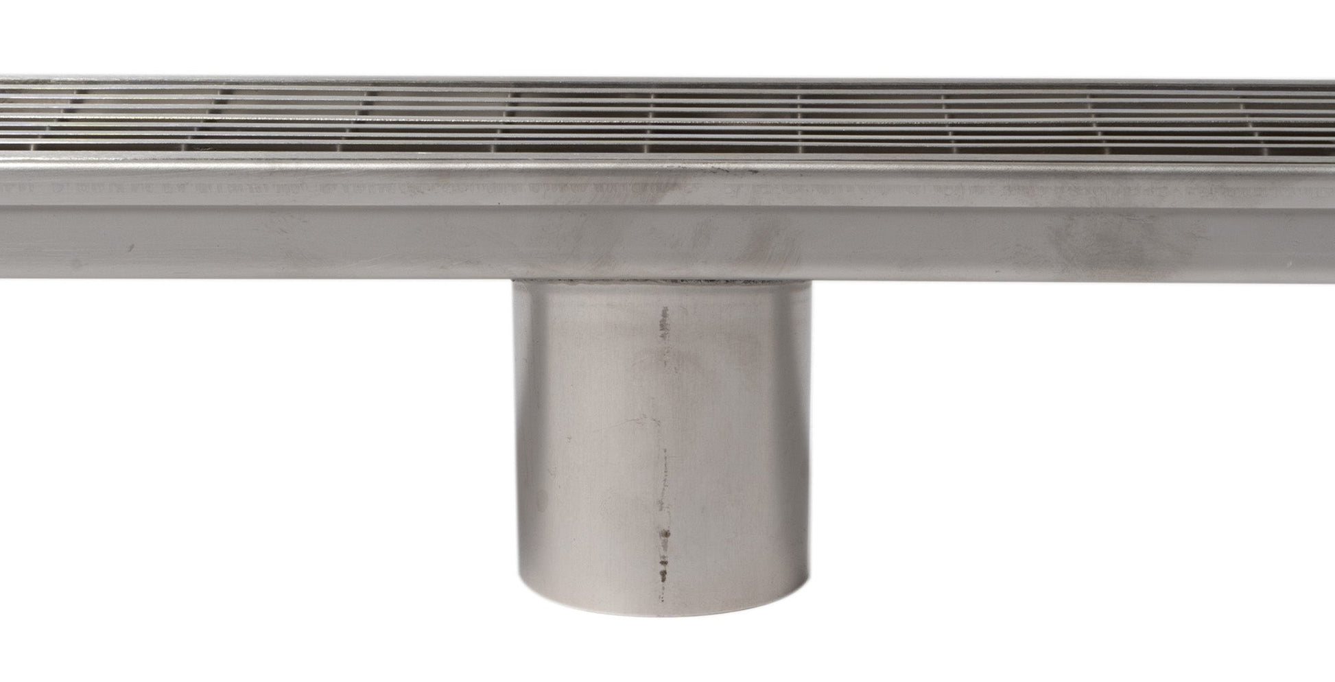 Extra large 47" shower drain allows you to create a one directional slope for extra large showers or for outdoor use. The stainless steel material is highly resistant to temperature variations and household cleaners and soaps. This unique style of shower drain provides you with the comfort of not standing directly over the drain while you shower, making your shower experience feel more hygienic and leaving your shower cleaner and dryer.