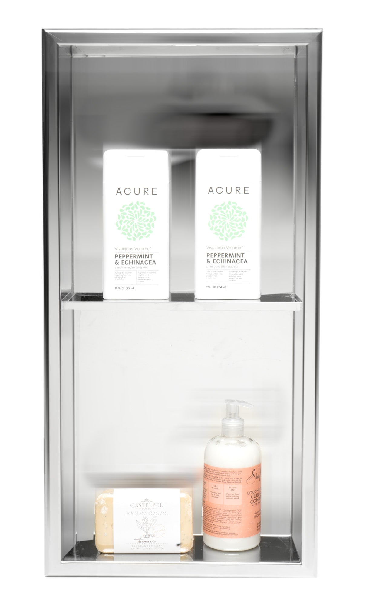- Traditional niches have always been just one single shelf. Now with this stainless steel niche you can enjoy two separate shelves to keep things neat.