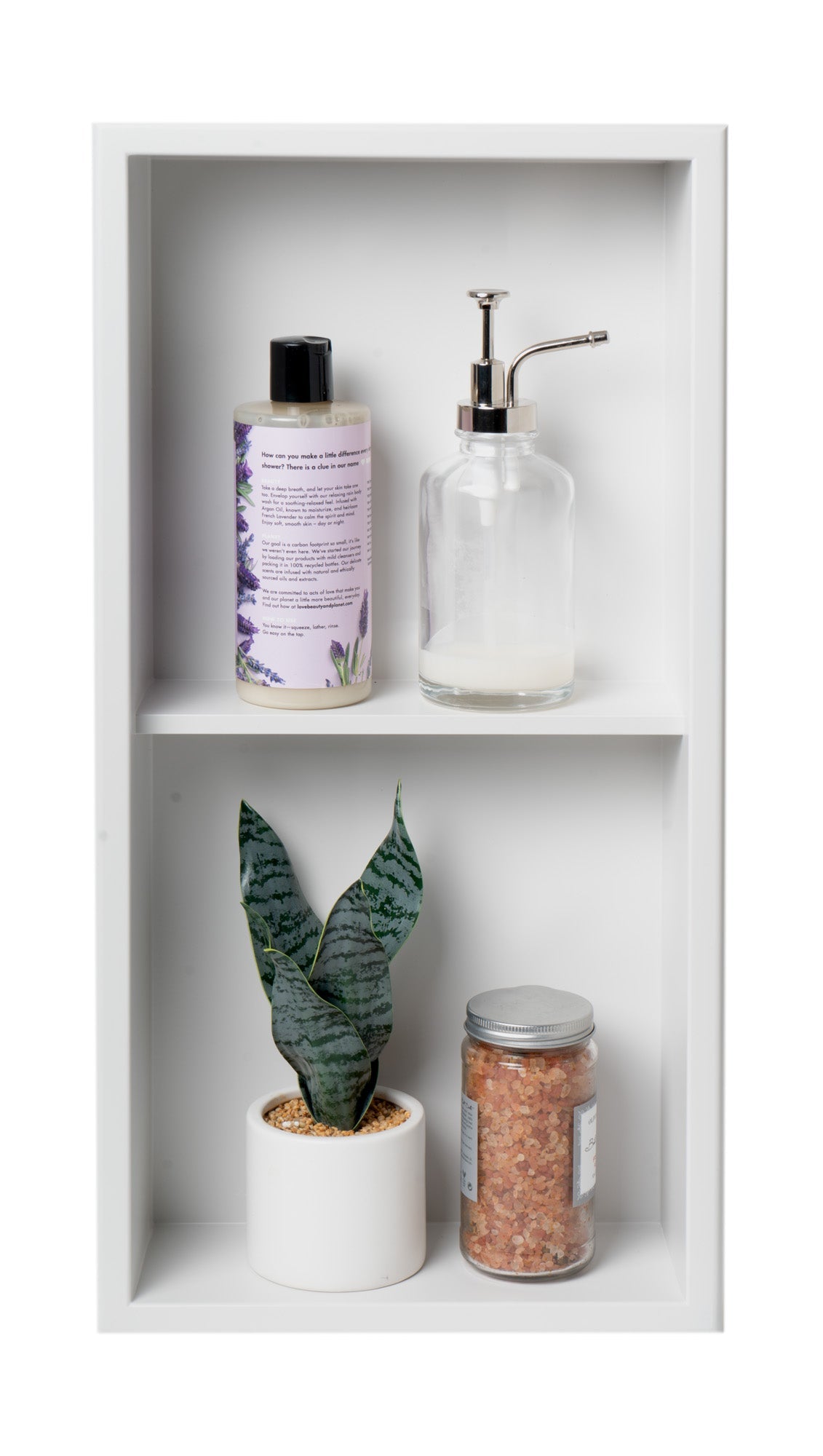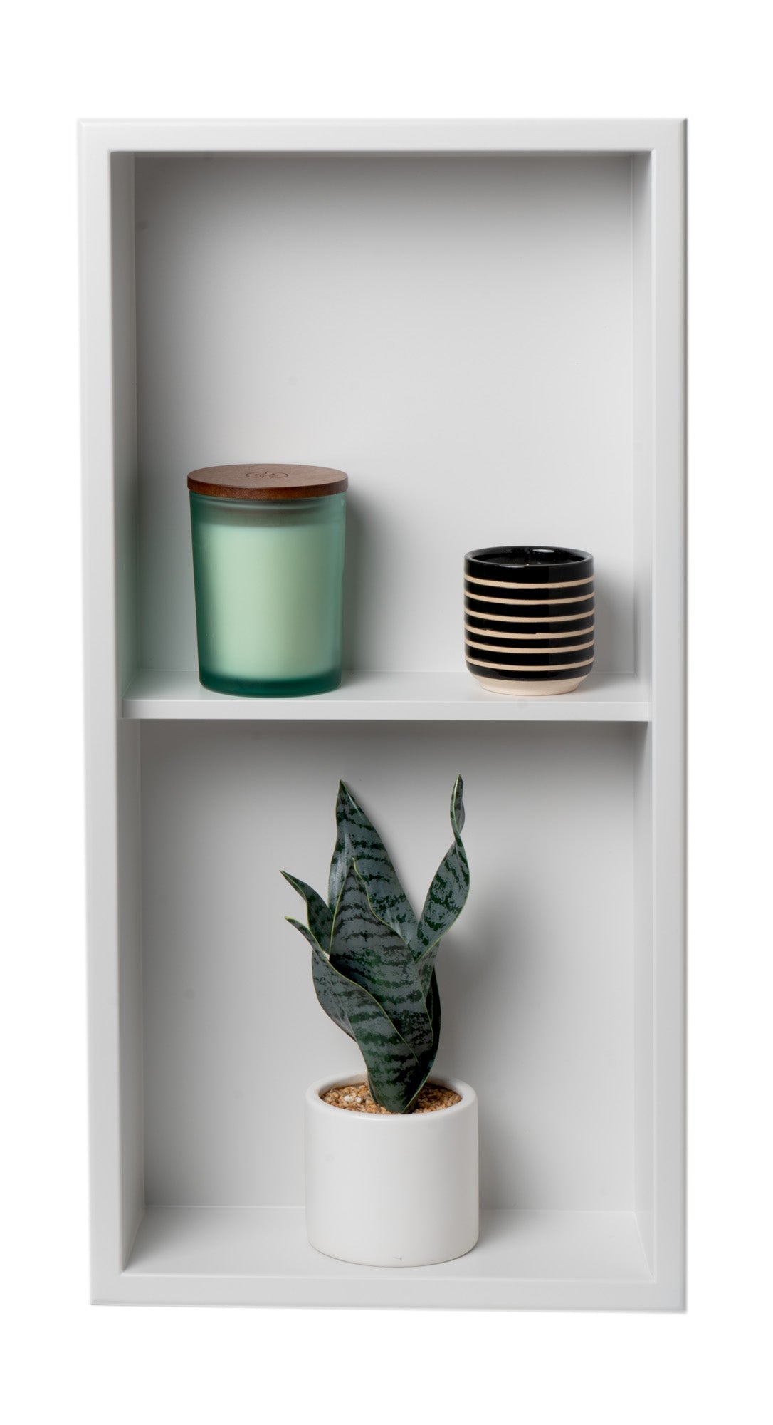 This ALFI brand stainless steel double shelf niche offers the practical convenience of recessed shelving anywhere in your home. The perfect space-saving solution for shower essentials, nik-naks, home decor, and more. With a variety of sizes and shapes to choose from, you can easily find a style to fit your design needs. Made from high-quality stainless steel material and finished with a matte powder coating, our niches are compact, easy to install, and offer a modern alternative to traditional shelving. Available in two stylish finishes to accommodate your decor; White or Black coated stainless steel.