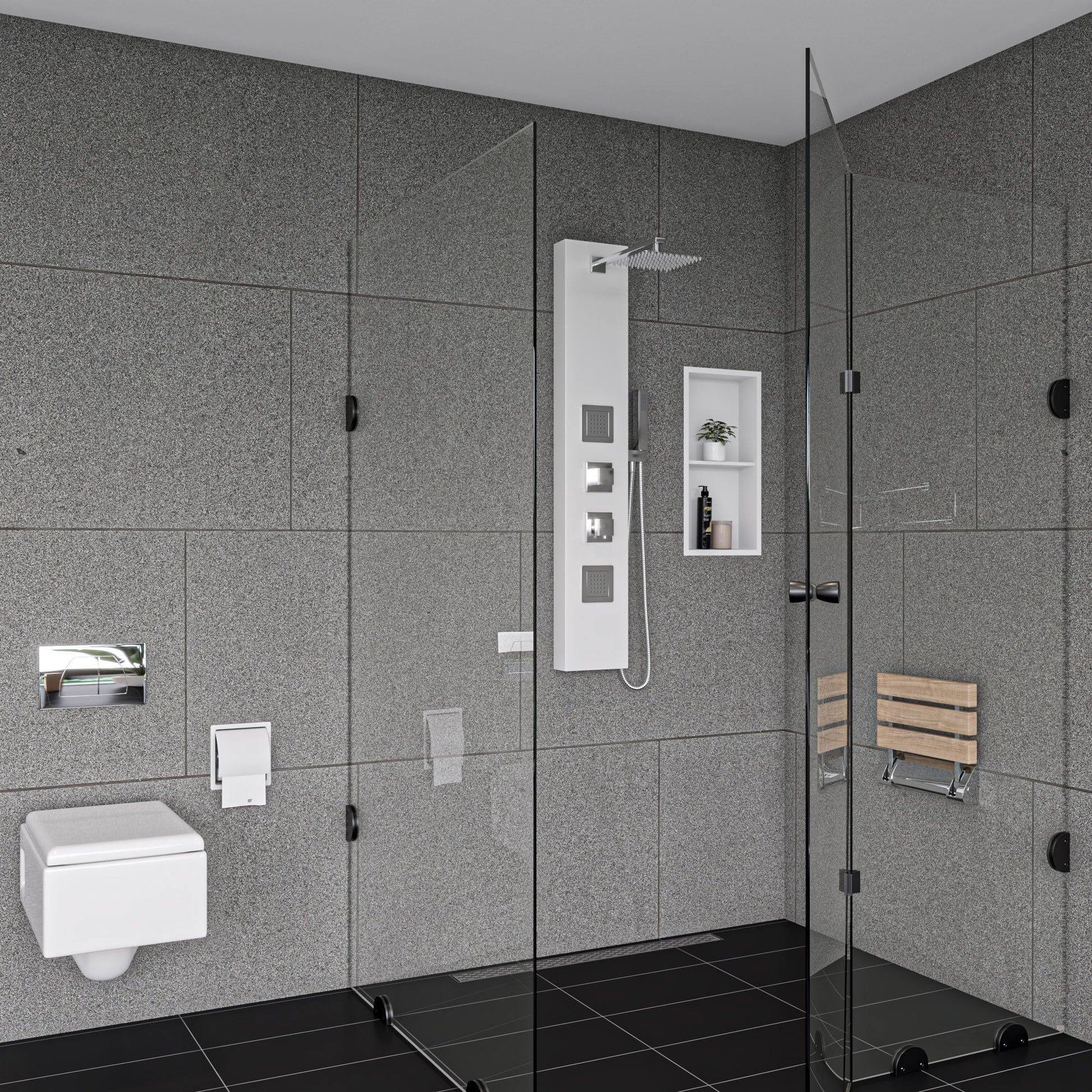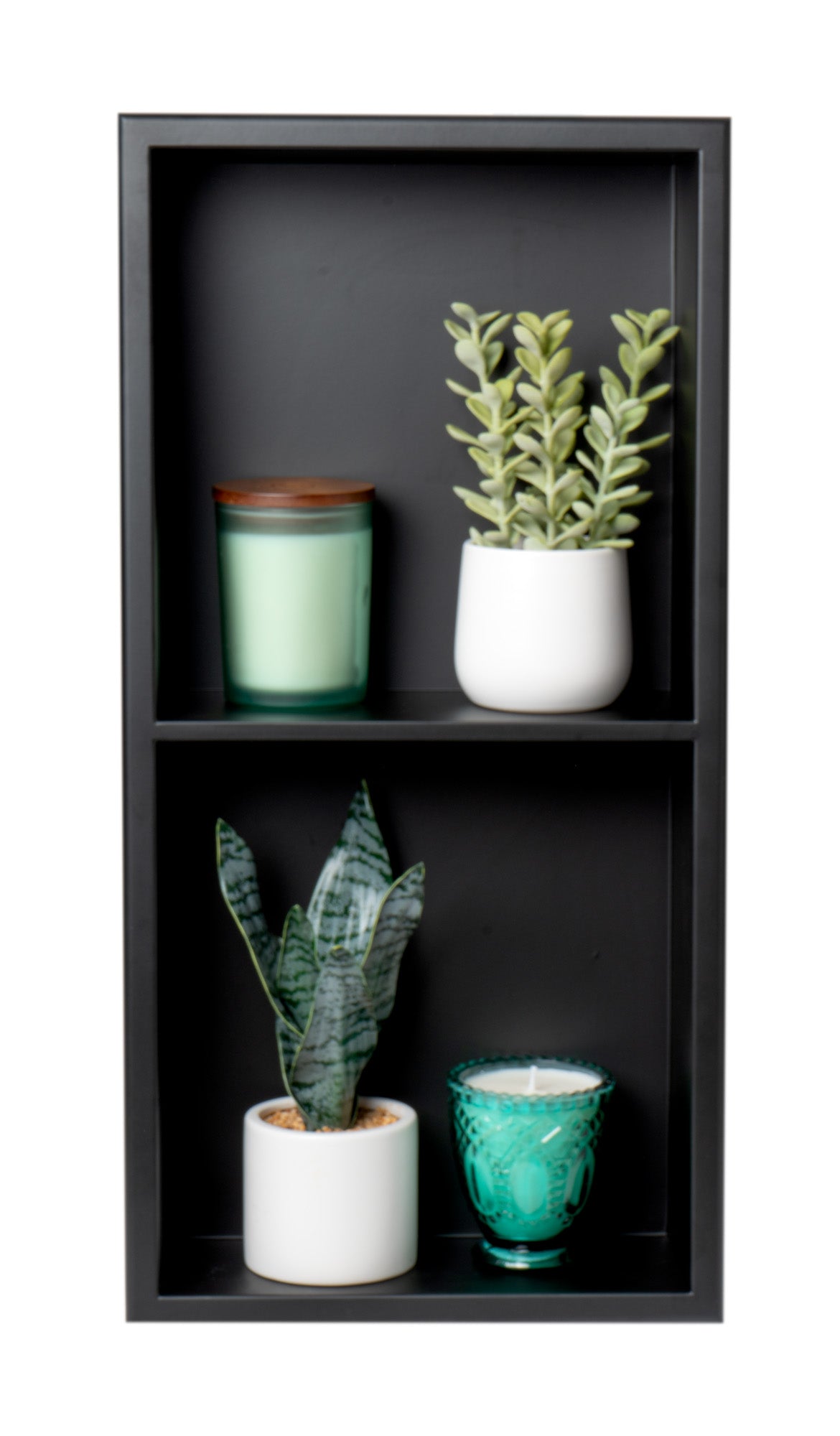 - Not just for your shower! This recessed niche adds convenient space to use for storage, decor or more. The neutral matte black color makes this niche the perfect modern choice for easy to install recessed shelving anywhere. The black color makes a statement and can become a center piece that matches effortlessly with other matte black hardware.