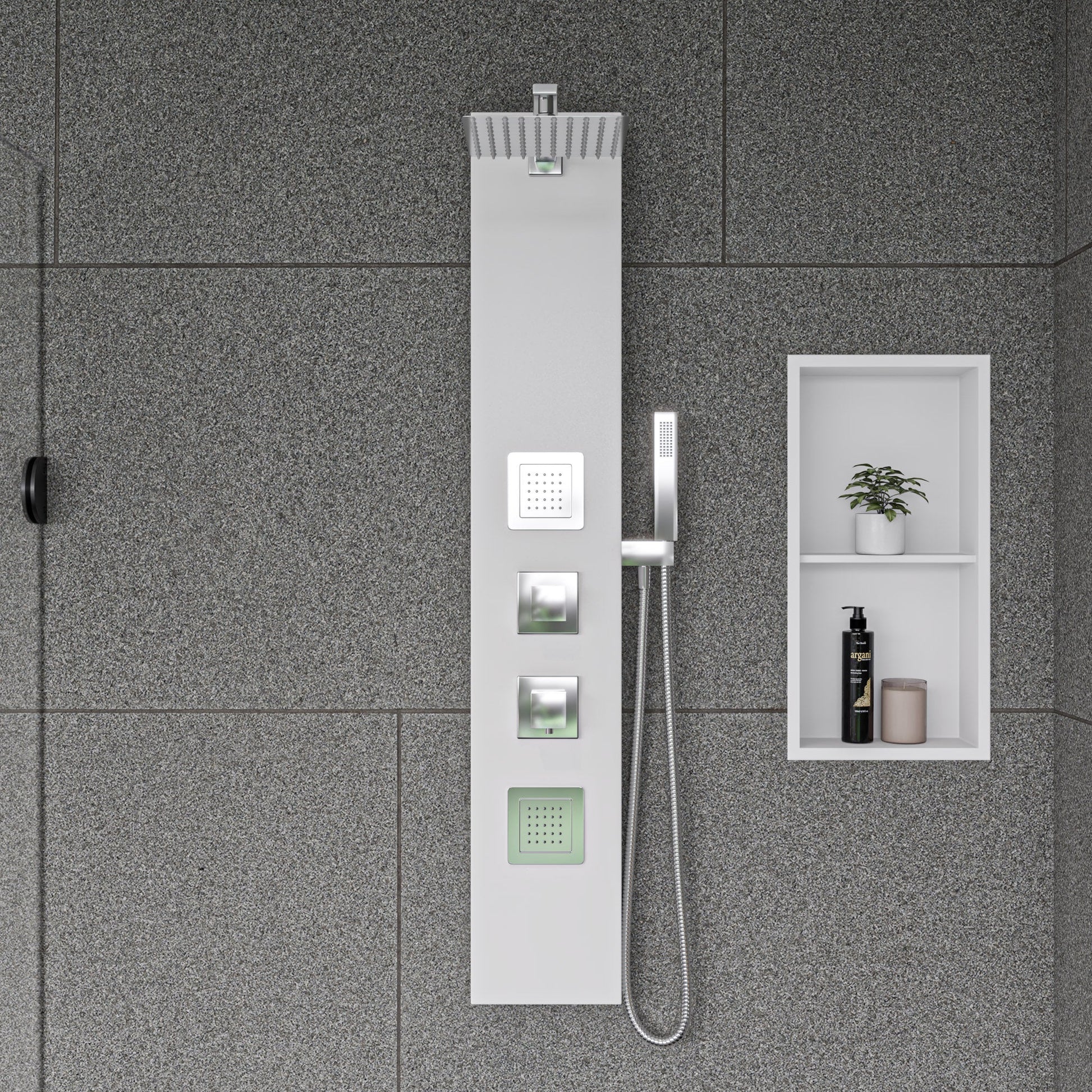 Recessed shower niches with shelves offer a streamlined, clutter-free appearance with no leaks. With a variety of sizes and shapes to choose from, you can easily find a style to fit your shower, bathroom, or even the rest of your home. Quality Stainless Steel material and between stud installation, offer a quick leak proof alternative to traditional custom tile niches. They also end up costing a lot less which is why this trendy new niche style has been picking up traction quickly ever since its recent release to the market.
