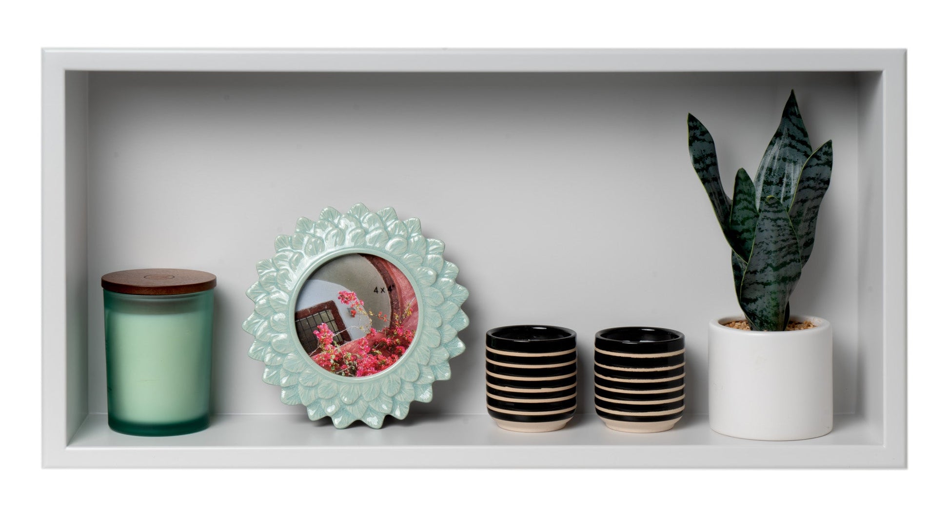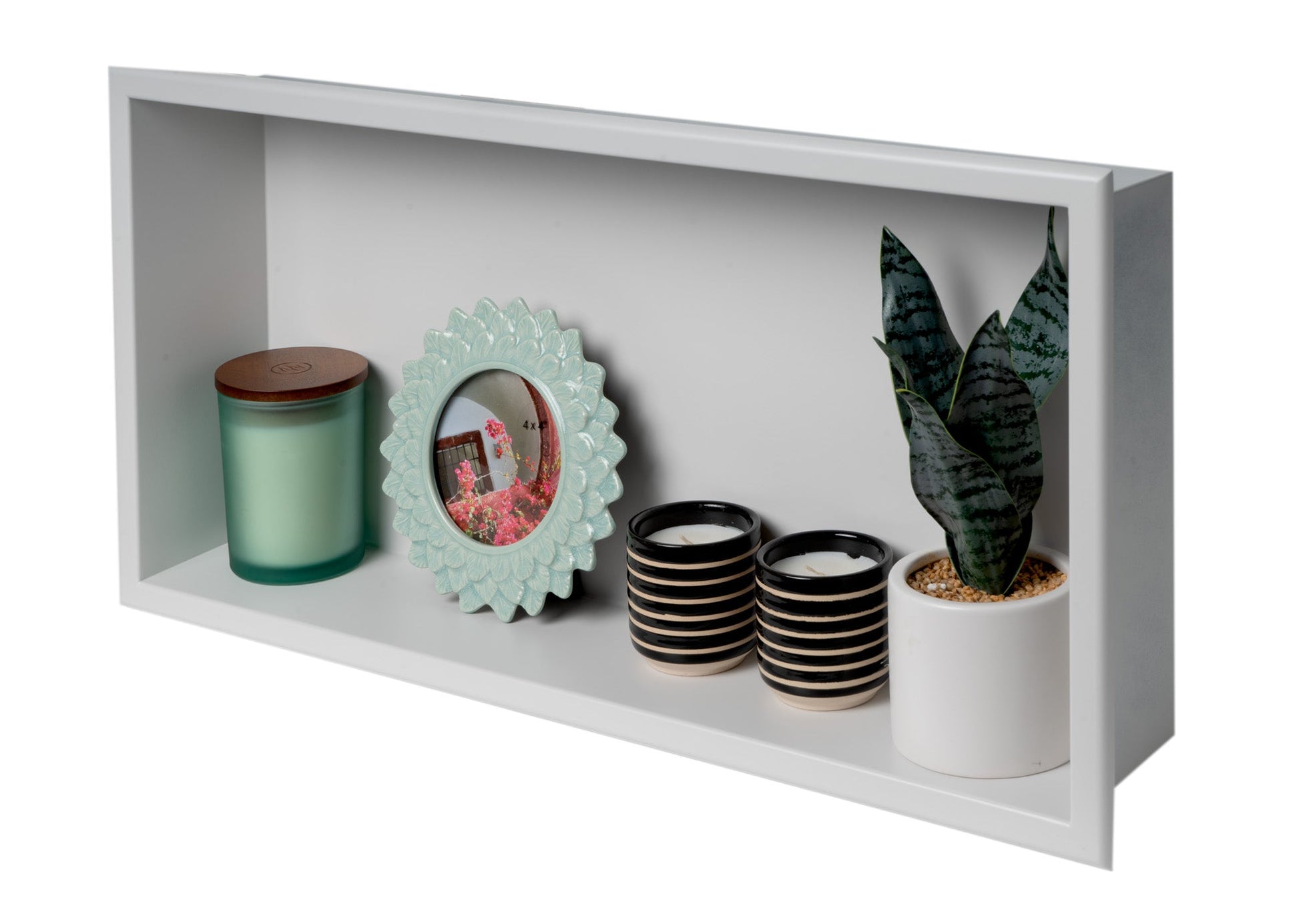 This ALFI brand stainless steel shelf niche offers the practical convenience of recessed shelving anywhere in your home. The perfect space-saving solution for shower essentials, nik-naks, home decor, and more. With a variety of sizes and shapes to choose from, you can easily find a style to fit your design needs. Made from high-quality stainless steel material and finished with a matte powder coating, our niches are compact, easy to install, and offer a modern alternative to traditional shelving. Available in two stylish finishes to accommodate your decor; White or Black coated stainless steel.