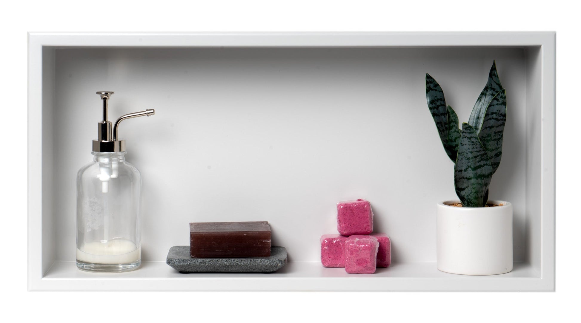 Recessed shower niches with shelves offer a streamlined, clutter-free appearance with no leaks. With a variety of sizes and shapes to choose from, you can easily find a style to fit your shower, bathroom, or even the rest of your home. Quality Stainless Steel material and between stud installation, offer a quick leak proof alternative to traditional custom tile niches. They also end up costing a lot less which is why this trendy new niche style has been picking up traction quickly ever since its recent release to the market.