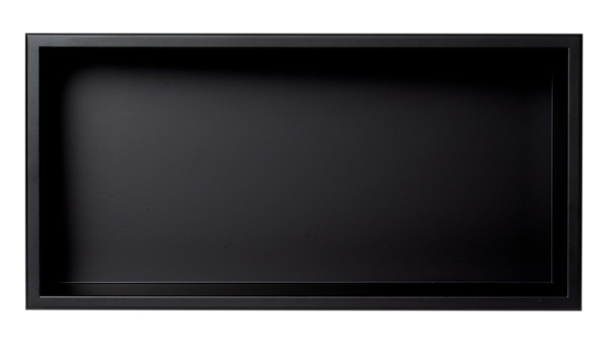 - Enjoy the sleek look of this stainless steel niche powder coated with a matte black finish that resists fingerprints and makes a statement in any home. Save hundreds of dollars over tiled niches; unlike traditional niches that require extra labor and expensive tile work, this niche is fully finished and ready to mount into your wall opening.