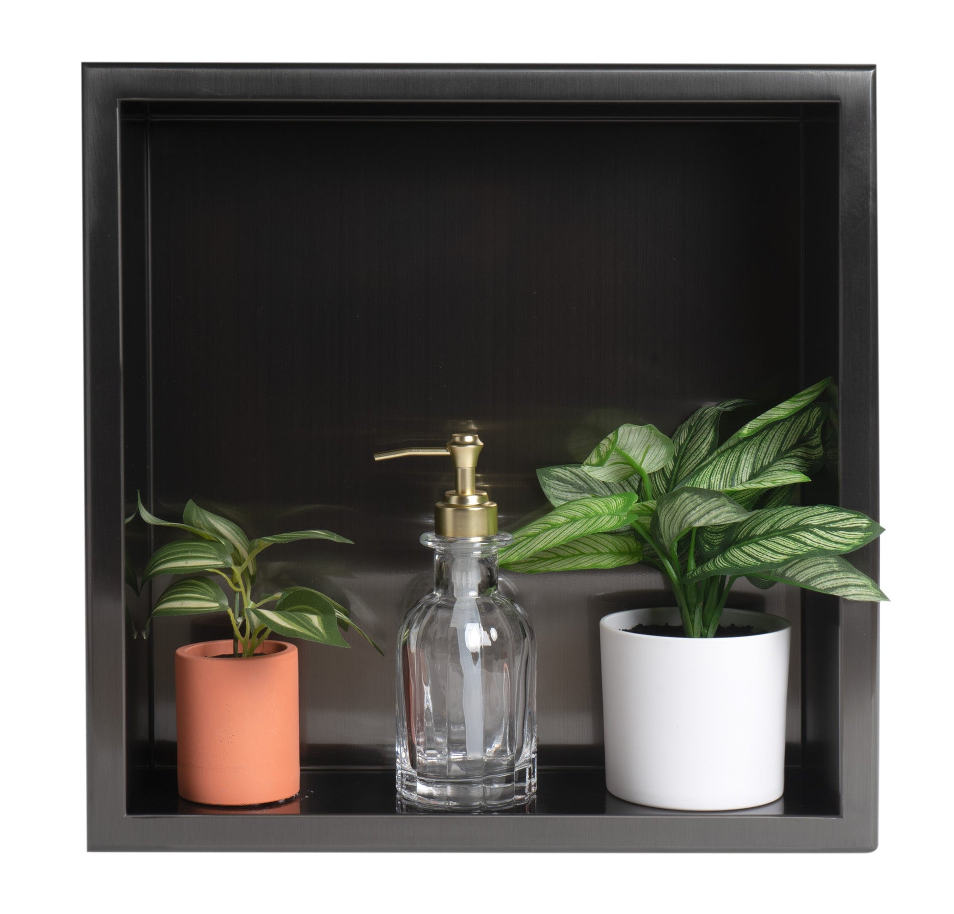 - Not just for your shower! This recessed niche adds convenient space to use for storage, decor or more. The neutral black color makes this niche the perfect modern choice for easy to install recessed shelving anywhere. The black color makes a statement and can become a centerpiece that matches effortlessly with other matte black hardware.
