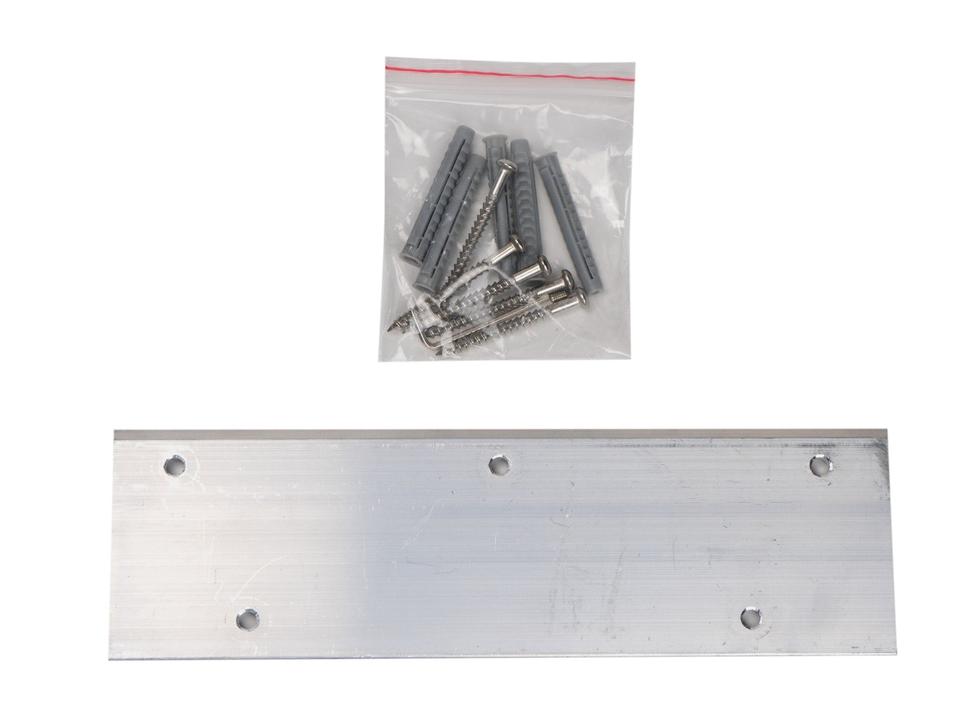 - The two cover plates which conceal the part that mounts to the wall are made of durable ABS plastic and coated with a matching finish.