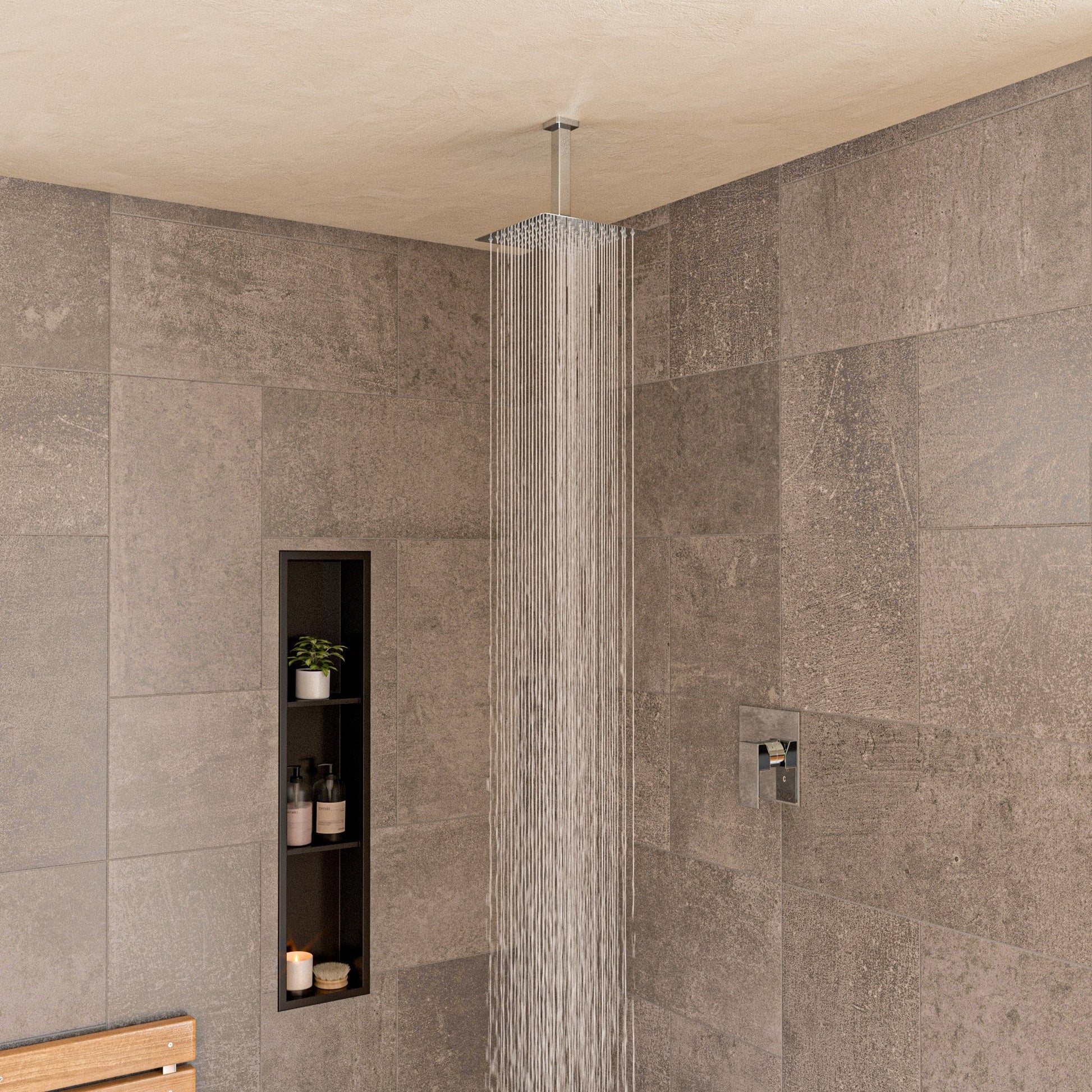 - Modern square pipe design. Perfect for use with square rain shower heads.