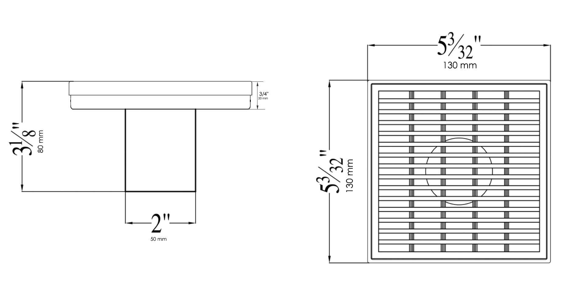 ALFI brand ABSD55D 5" x 5" Square Stainless Steel Shower Drain with Groove Lines