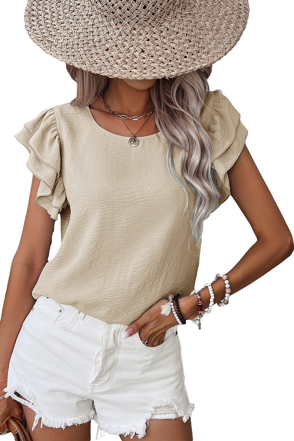 This blouse features charming ruffle sleeves, which not only enhance its feminine appeal but also provide a comfortable fit for all-day wear. The ruffles flow gracefully, adding movement and texture to your outfit. Designed to flatter a variety of body types, the Aqua Ruffle Sleeve Blouse allows for easy styling. Whether you’re dressing it up for a night out or keeping it casual for a brunch date, this blouse is sure to become a staple in your closet.