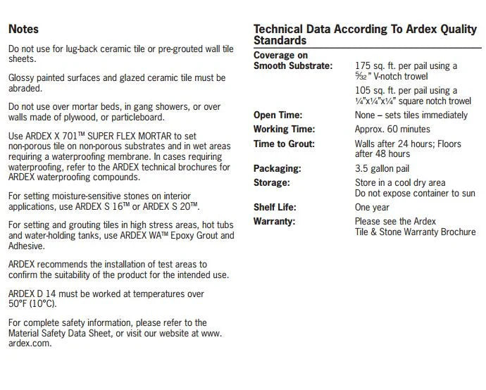 Ardex D 14 Mastic Type 1 Premixed Tile Adhesive