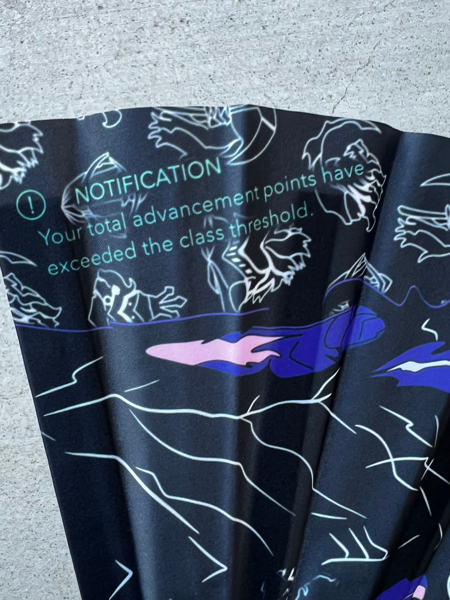 Embrace your inner warrior with the Arise Glow Fan. This striking accessory helps keep you cool during intense festivals while showcasing a bold glow under blacklight that commands attention. Whether you're cosplaying your favorite character, dancing at an anime convention, or powering through a rave, this fan delivers both function and fierce style. The UV reactive design transforms under festival lights, making you stand out in any crowd with warrior-level confidence.