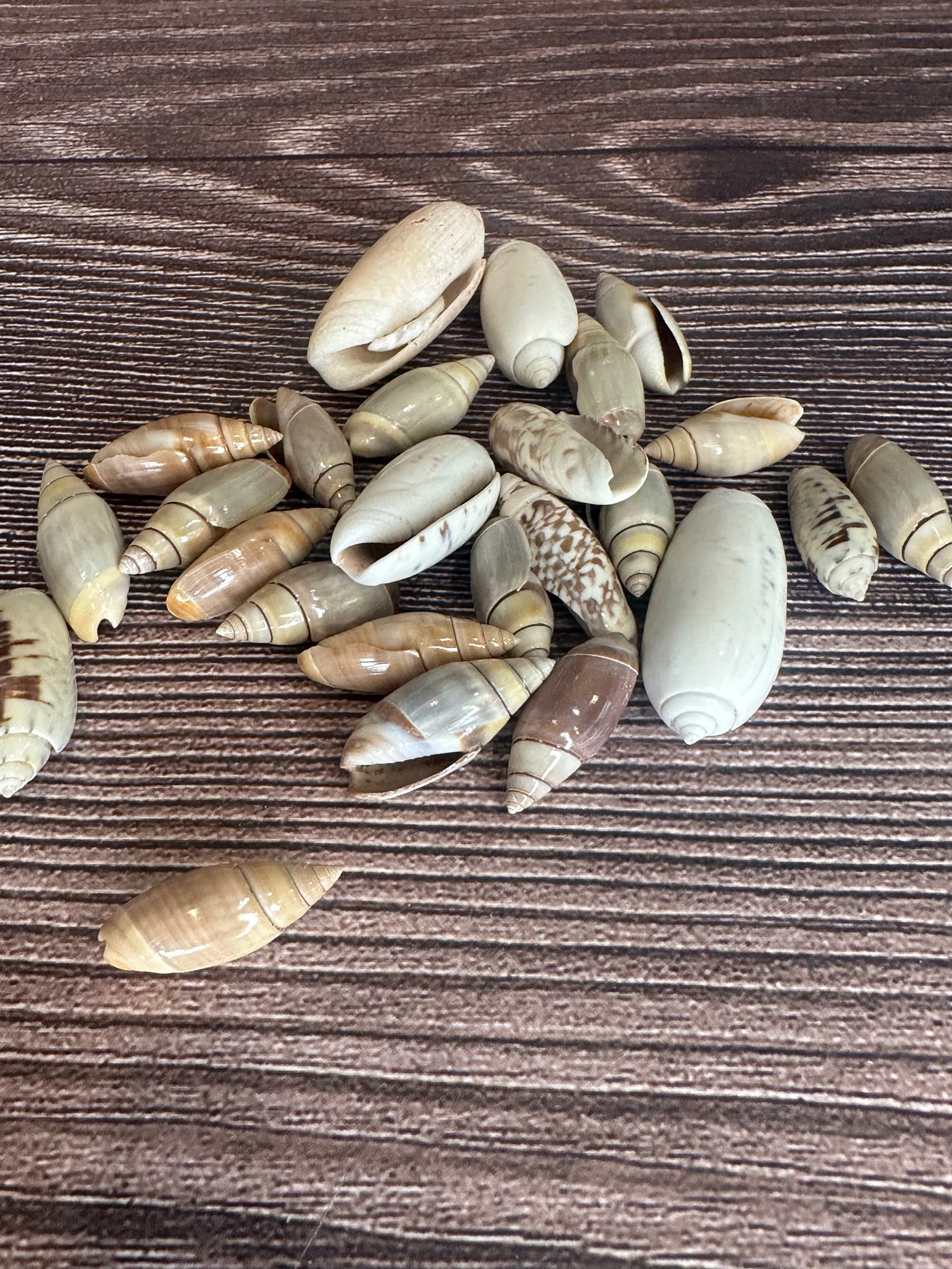 Bring a touch of the ocean to your creative projects with these beautiful Assorted Olive Shells. Ranging from 0.5" to 2" in size, these shells feature a variety of natural patterns and smooth, polished finishes, making them perfect for crafting, jewelry, home décor, and seashell art. With their elegant, glossy surfaces, these mixed-species shells add a coastal flair to any project.