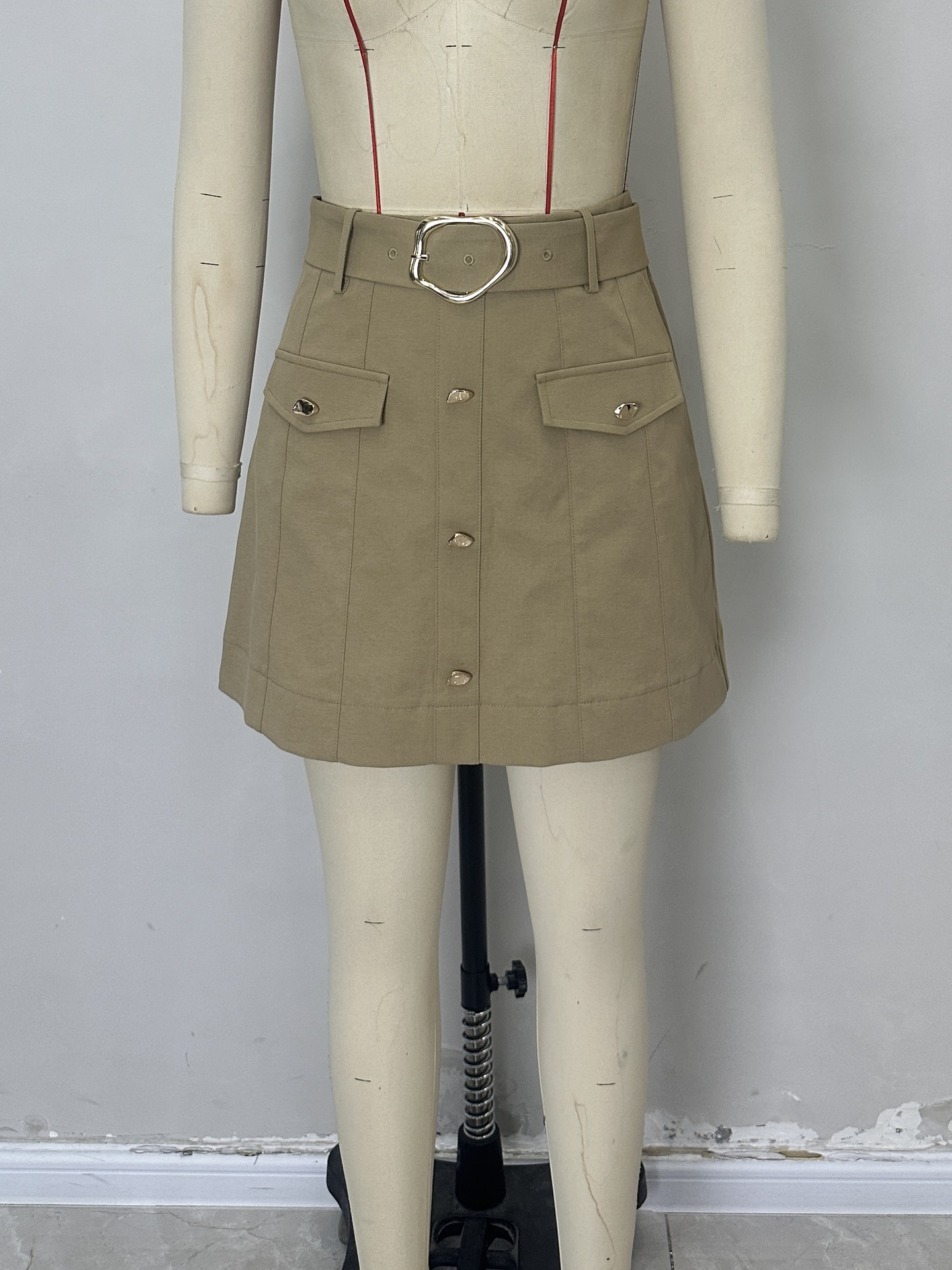 Autumn Boot Skirt Retro High Waist Belt Waist Slimming Short A line Skirt