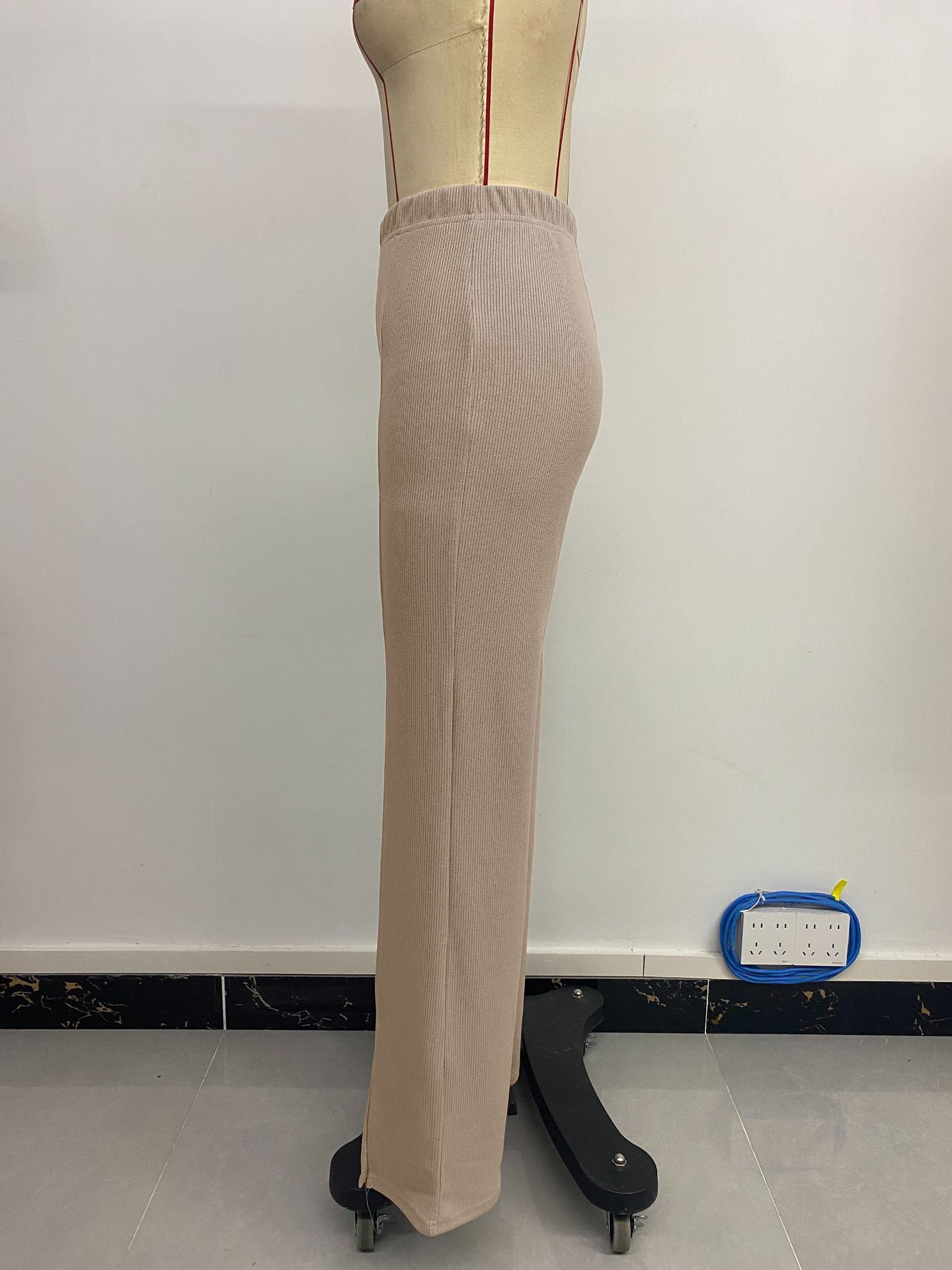 Autumn Office Casual Simple Loose High Waist Slit Solid Color Straight Leg Pants Women