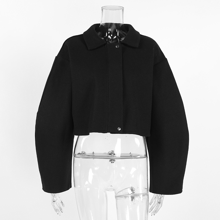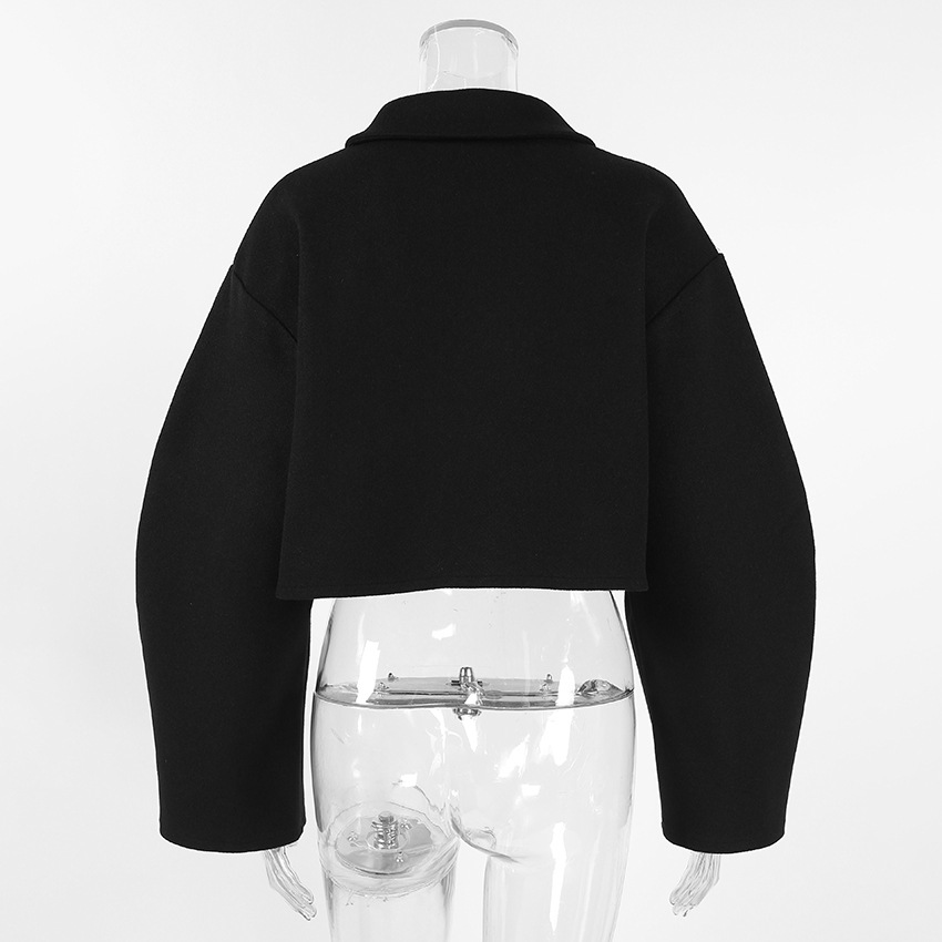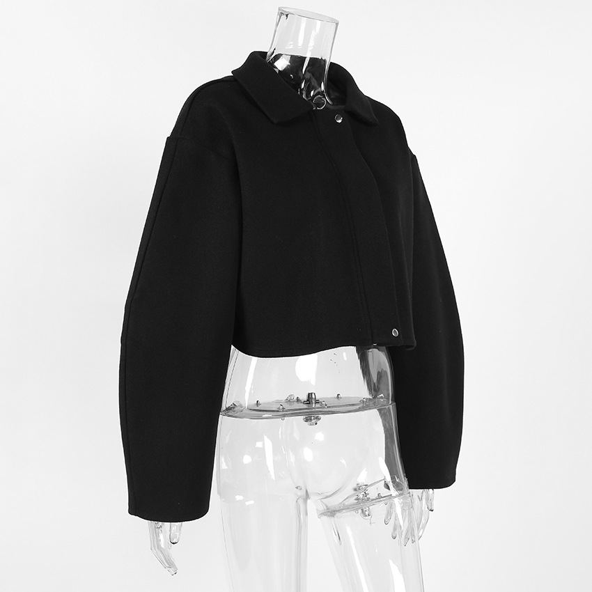 Autumn Trend Casual Machete Collared Zipper Short Woolen Coat Women