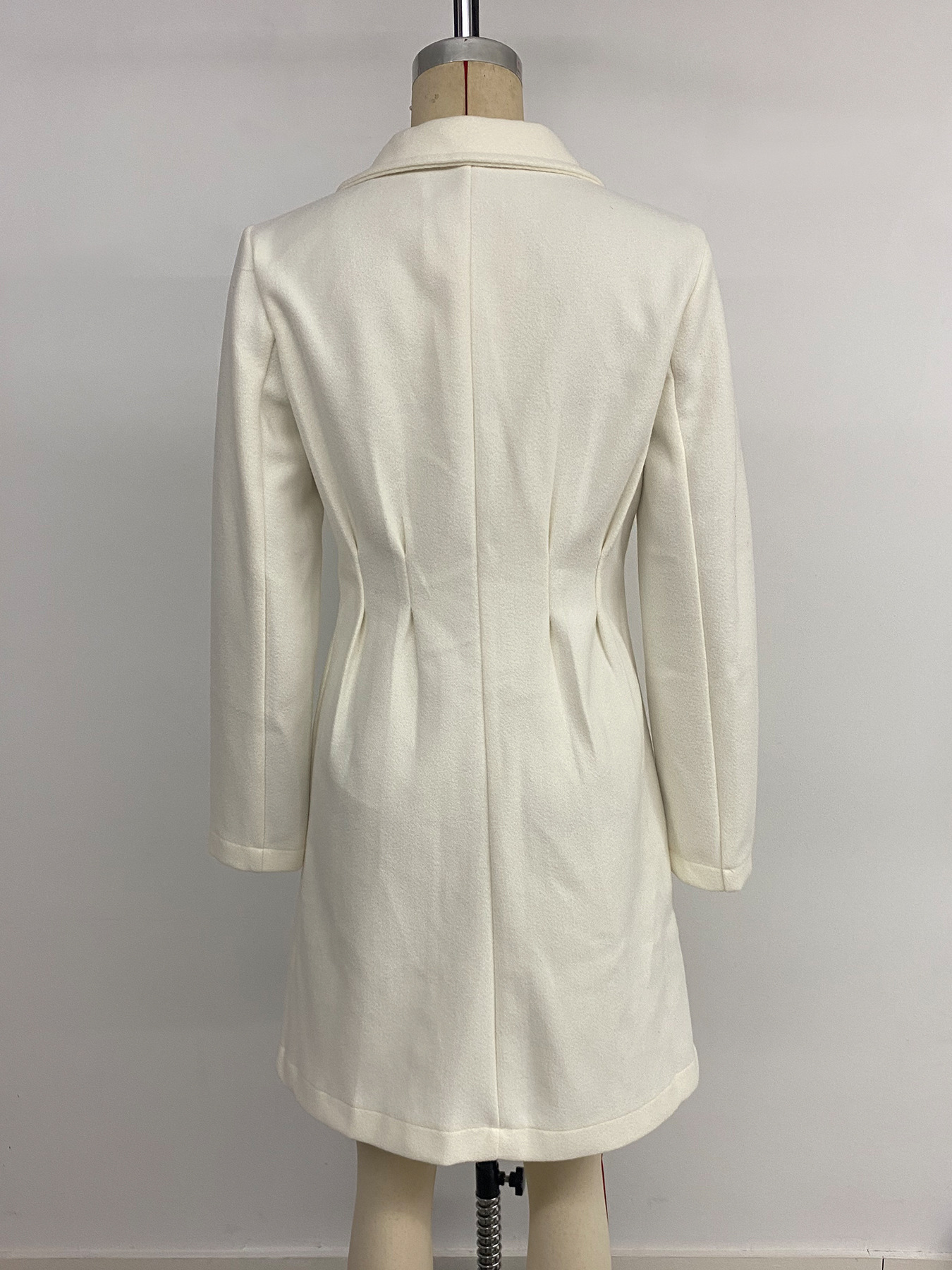 Autumn Winter Elegant Pearl Fastener Decoration Solid Color Wool Coat