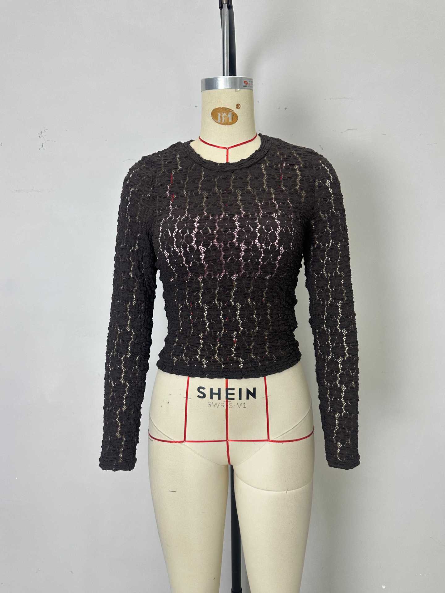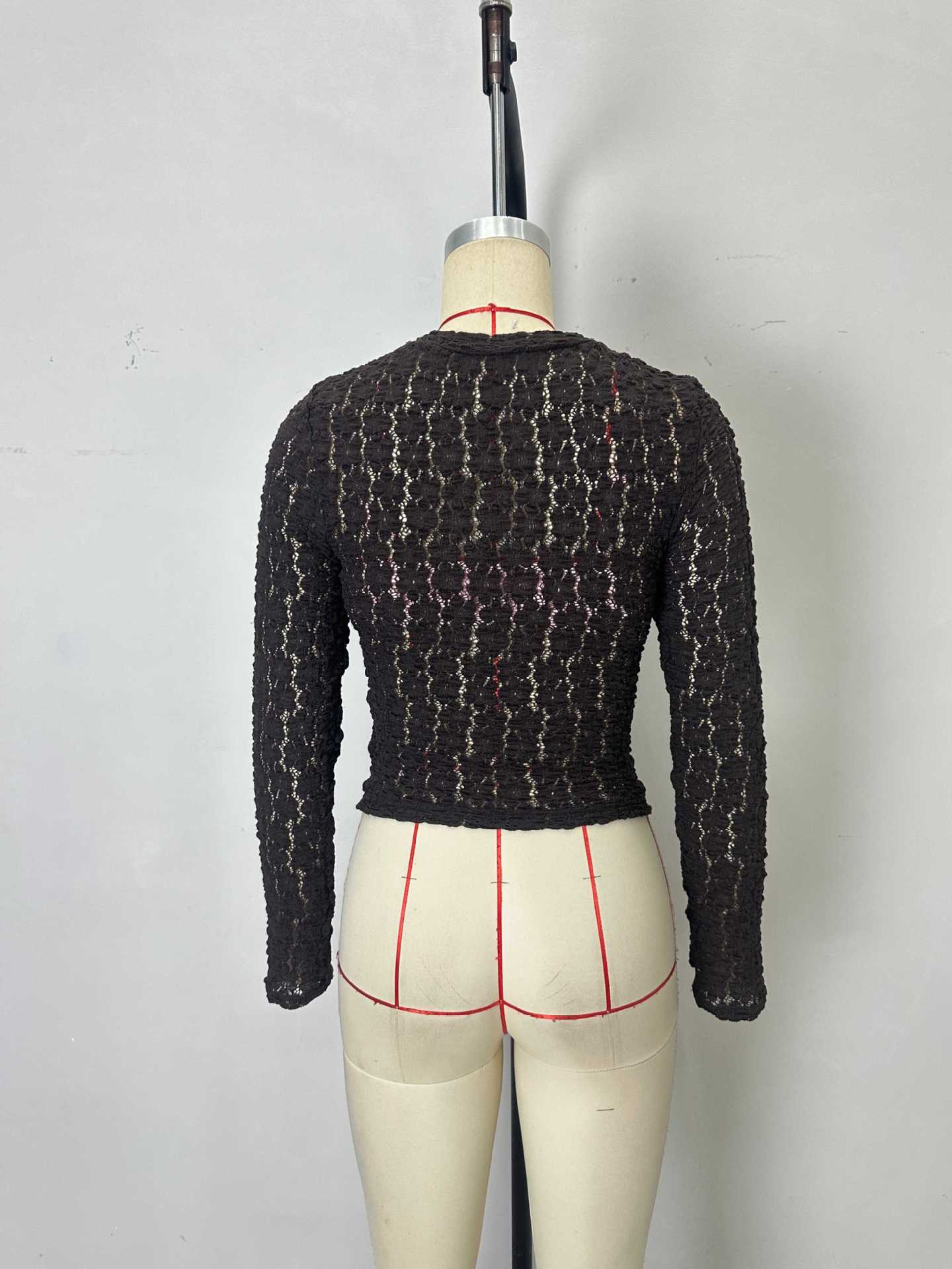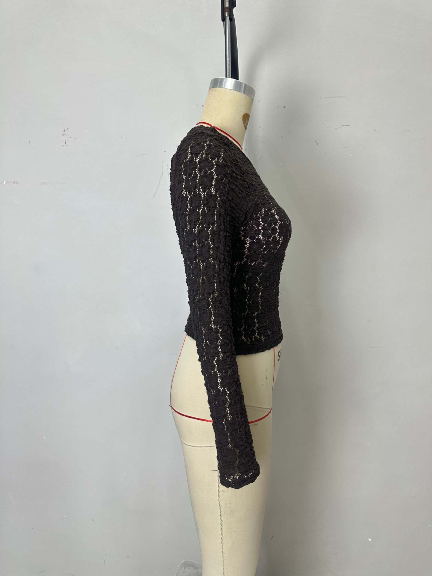 Autumn Winter Slim Slimming Lace Top Long Sleeve Mesh Hollow Out Cutout All Matching Bottoming Shirt