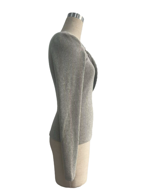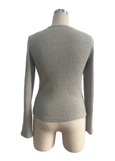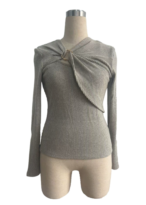Autumn Winter Sunken Stripe Brushed Irregular Asymmetric Hollow Out Cutout out Metal Buckle Decorative Top Women