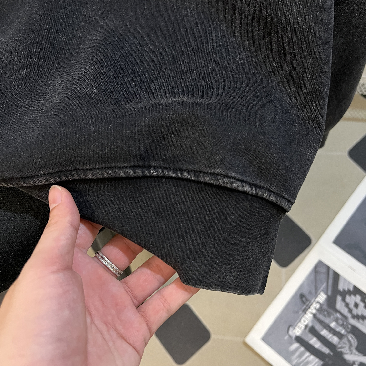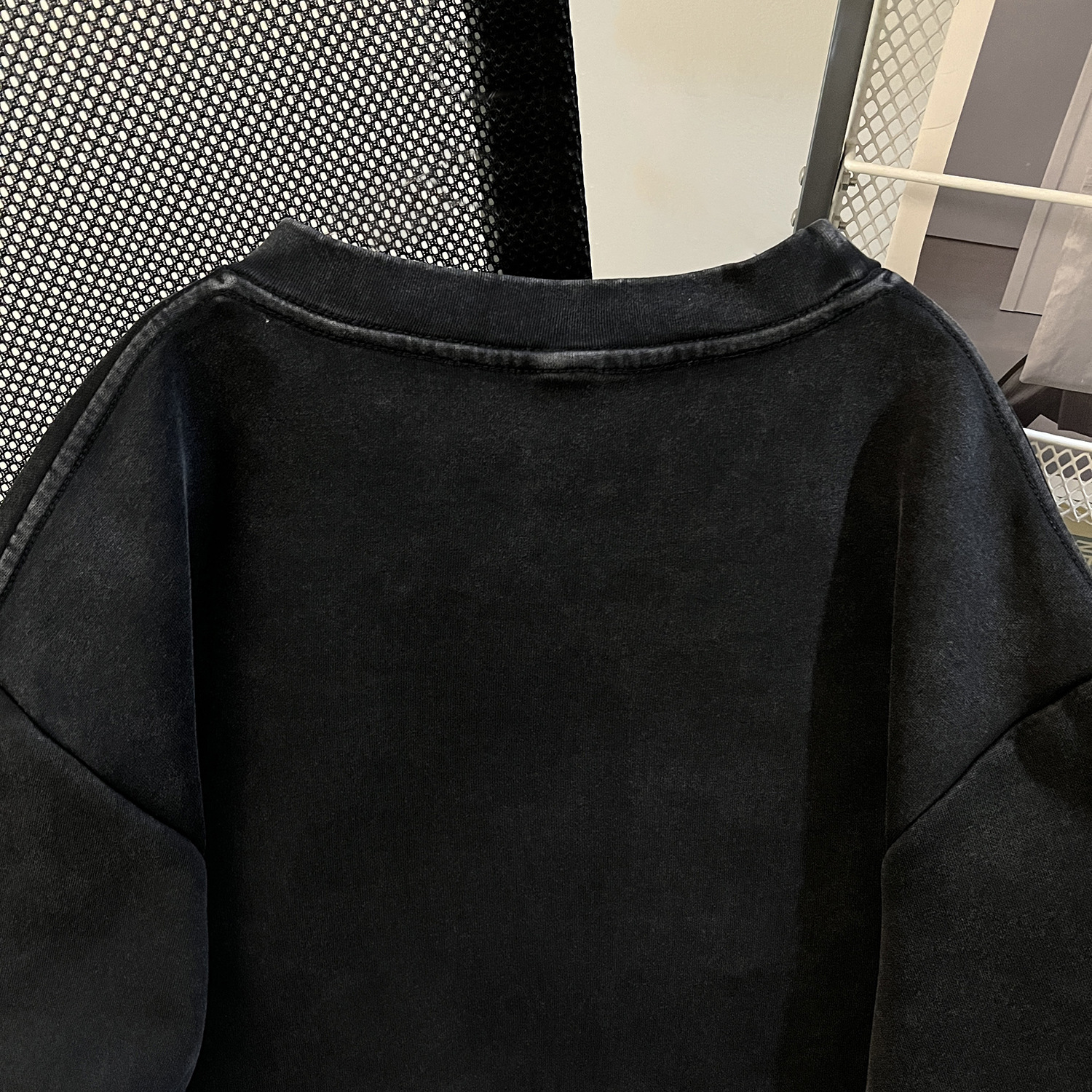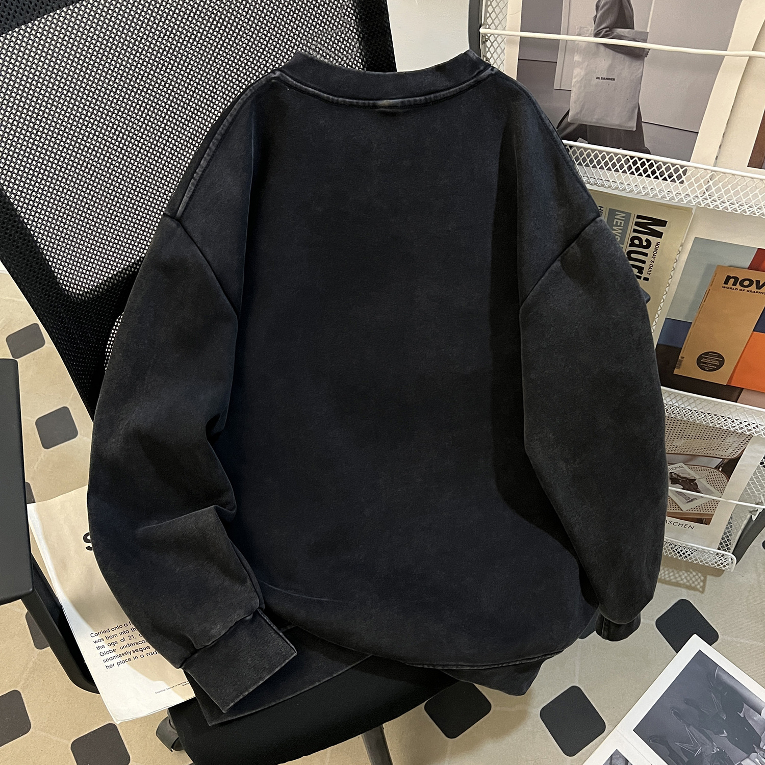 Autumn Winter Washable Cotton Cotton Cotton Composite Long Sleeved T shirt Special Interest Design Distressed Waxed round Neck Sweater