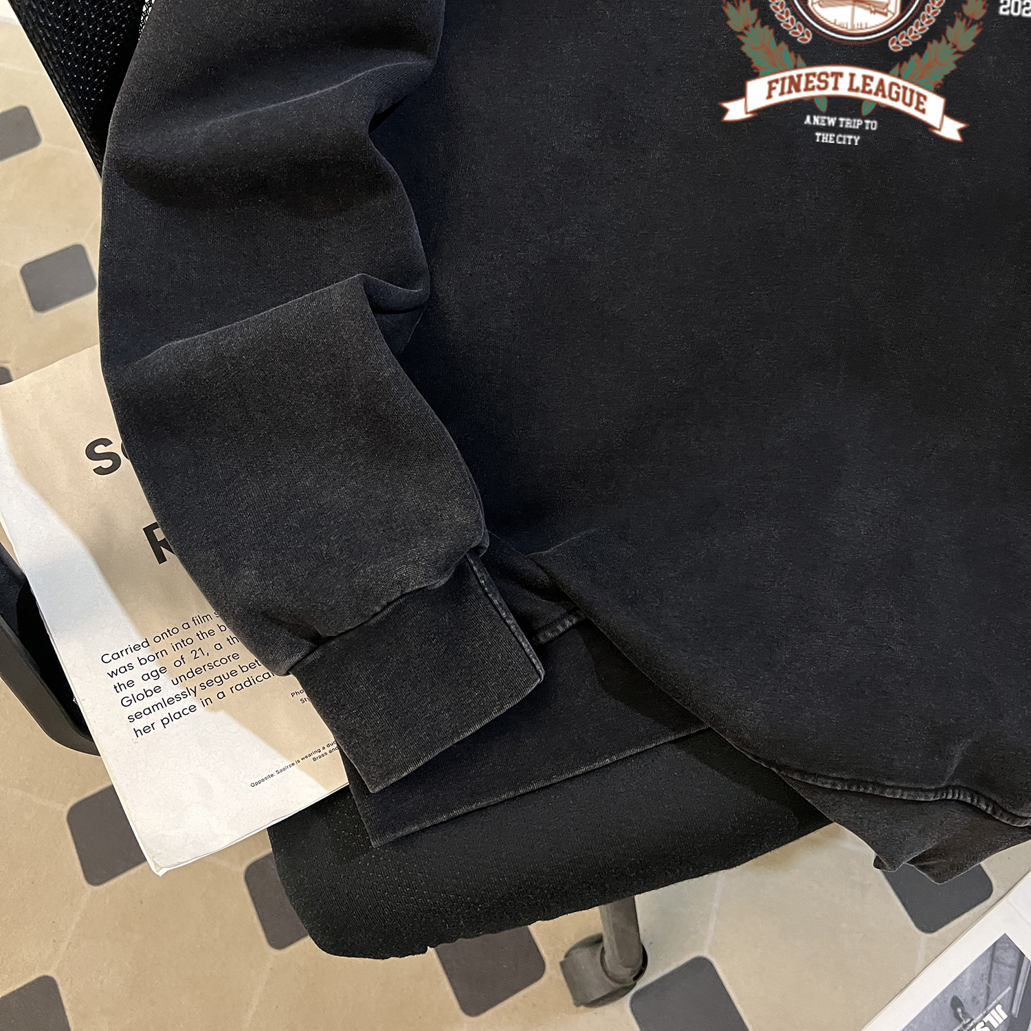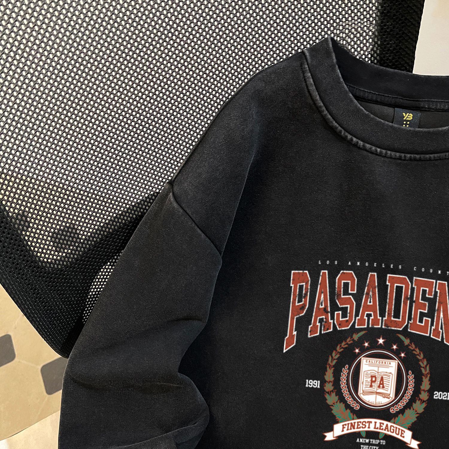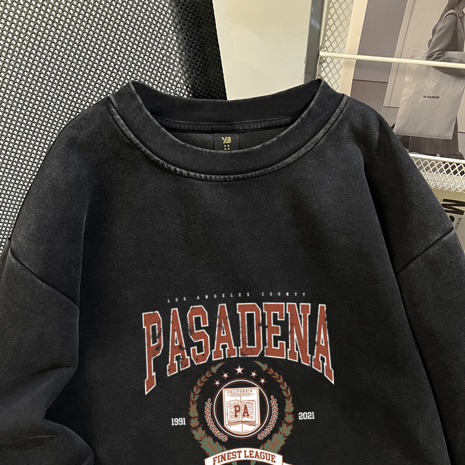 Autumn Winter Washable Cotton Cotton Cotton Composite Long Sleeved T shirt Special Interest Design Distressed Waxed round Neck Sweater
