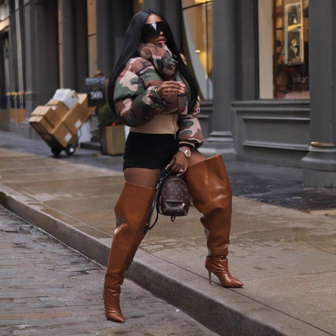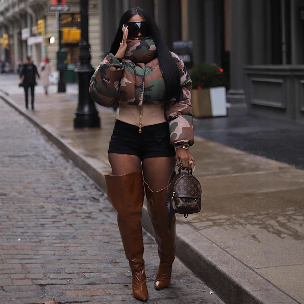 Autumn Winter Women Clothing Retro Camouflage Print Short Jacket Cotton Coat