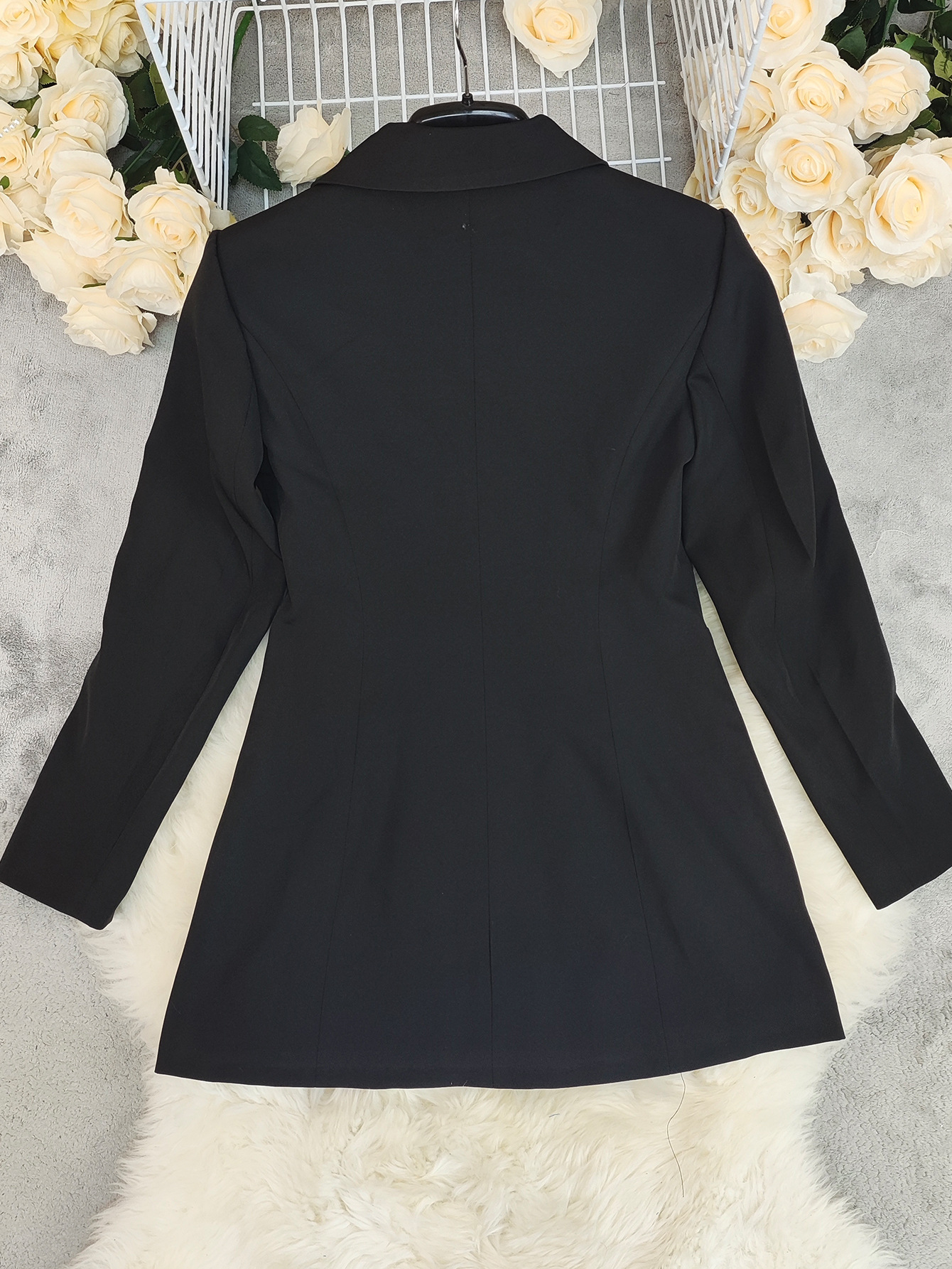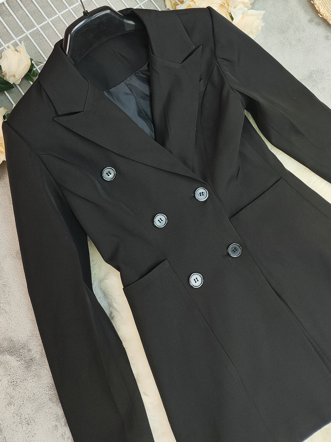 Autumn Winter Women Long Sleeved Coat Office Professional Double Breasted Mid Length Blazers