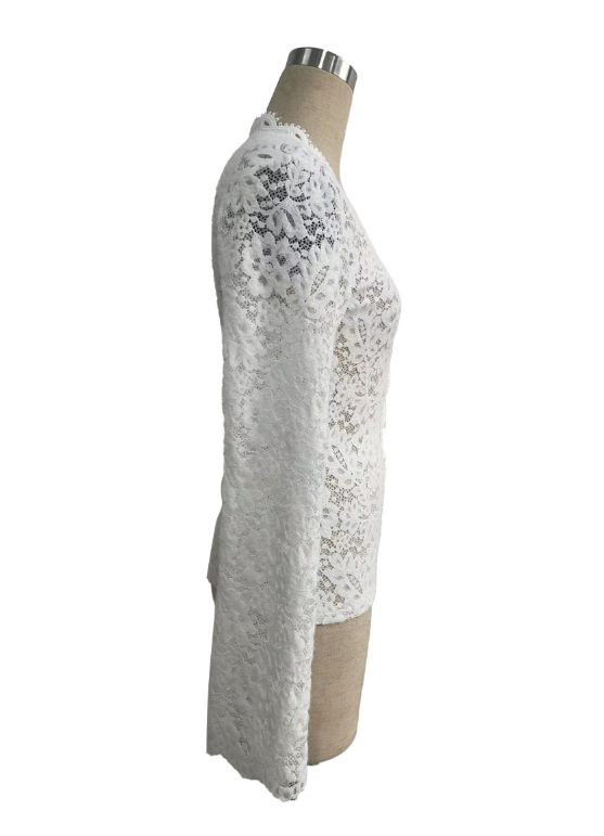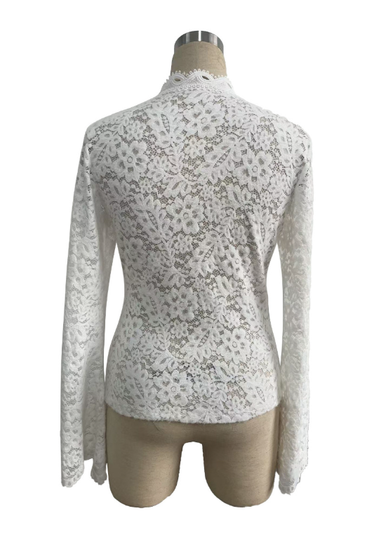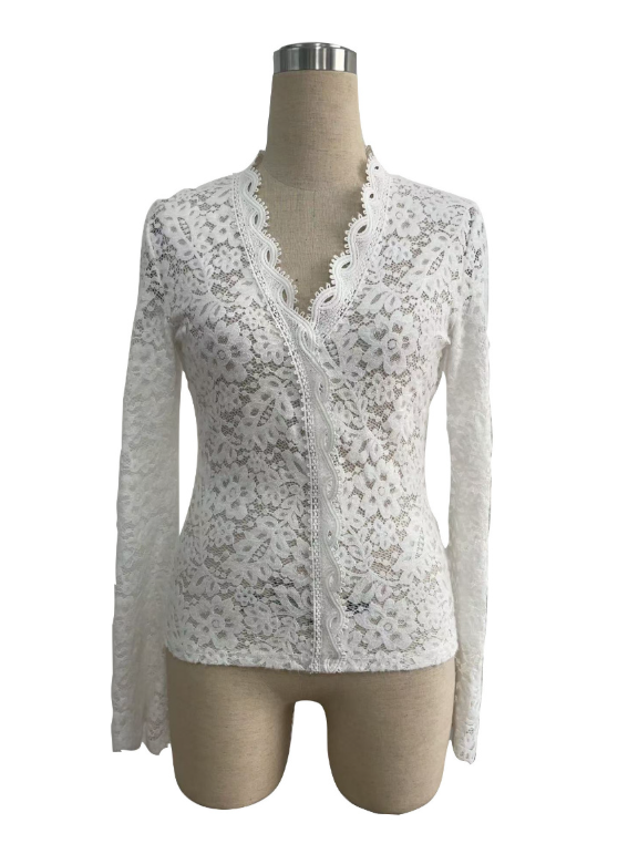 Autumn Winter Women White Sexy Elegant Luxury Lace Slim Top