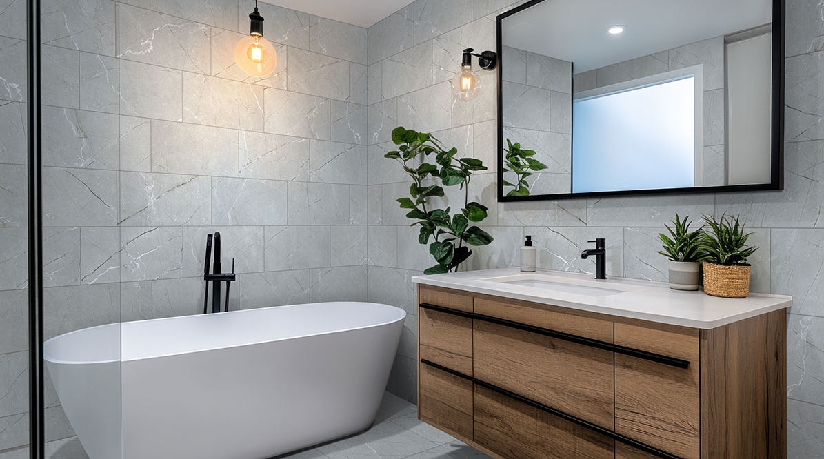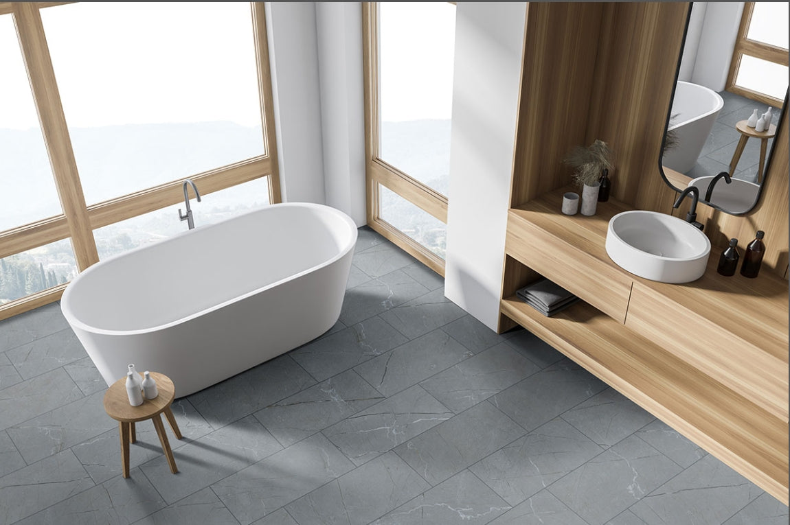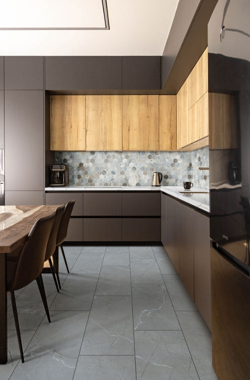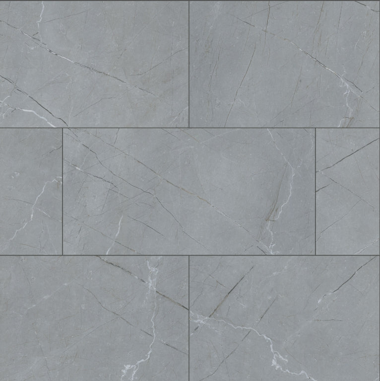 Transform your space with the Aylana Gris Porcelain Floor and Wall Tile, a captivating 12” x 24” marvel with an authentic marble-look featuring a gray background adorned with light and dark metallic veins that shimmer against a contrasting matte finish causing a mesmerizing appeal when light hits its surface. Ideal for styling a flashy accent wall, bold backsplash, or a chic residential floor. This tile brings vibrancy to kitchens, bathrooms, and various residential or commercial settings with its on-trend, modern charm. Its multifaceted design aesthetic effortlessly merges a lavish allure with practical functionality, making this tile great for areas that crave a touch of radiancy.