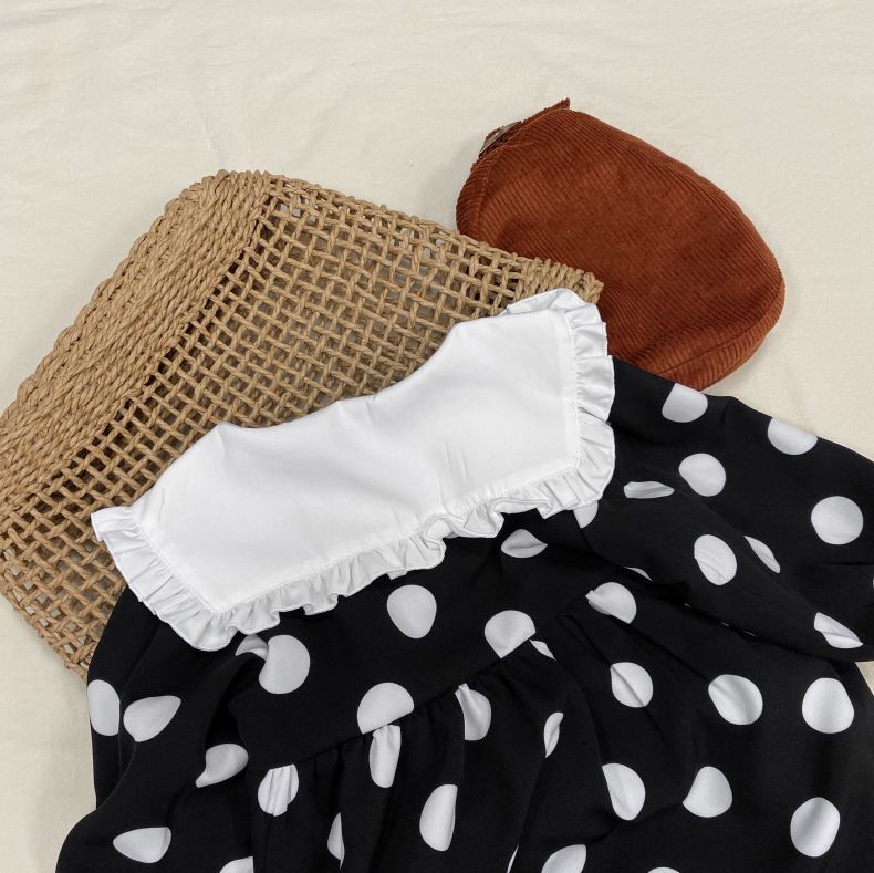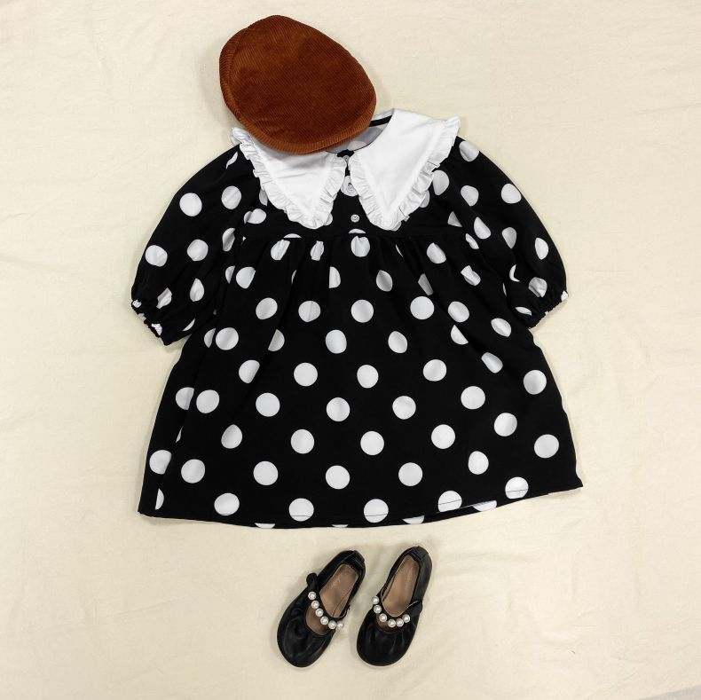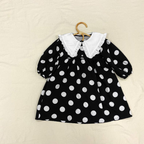 This Baby Girls Polka Dot Print Turn-Down Collar Design Pull Sleeved Dress is perfect for keeping her looking chic and stylish. It boasts a classic polka dot print and features a turn-down collar design with pull sleeved cuffs. It's the perfect dress for special occasions.