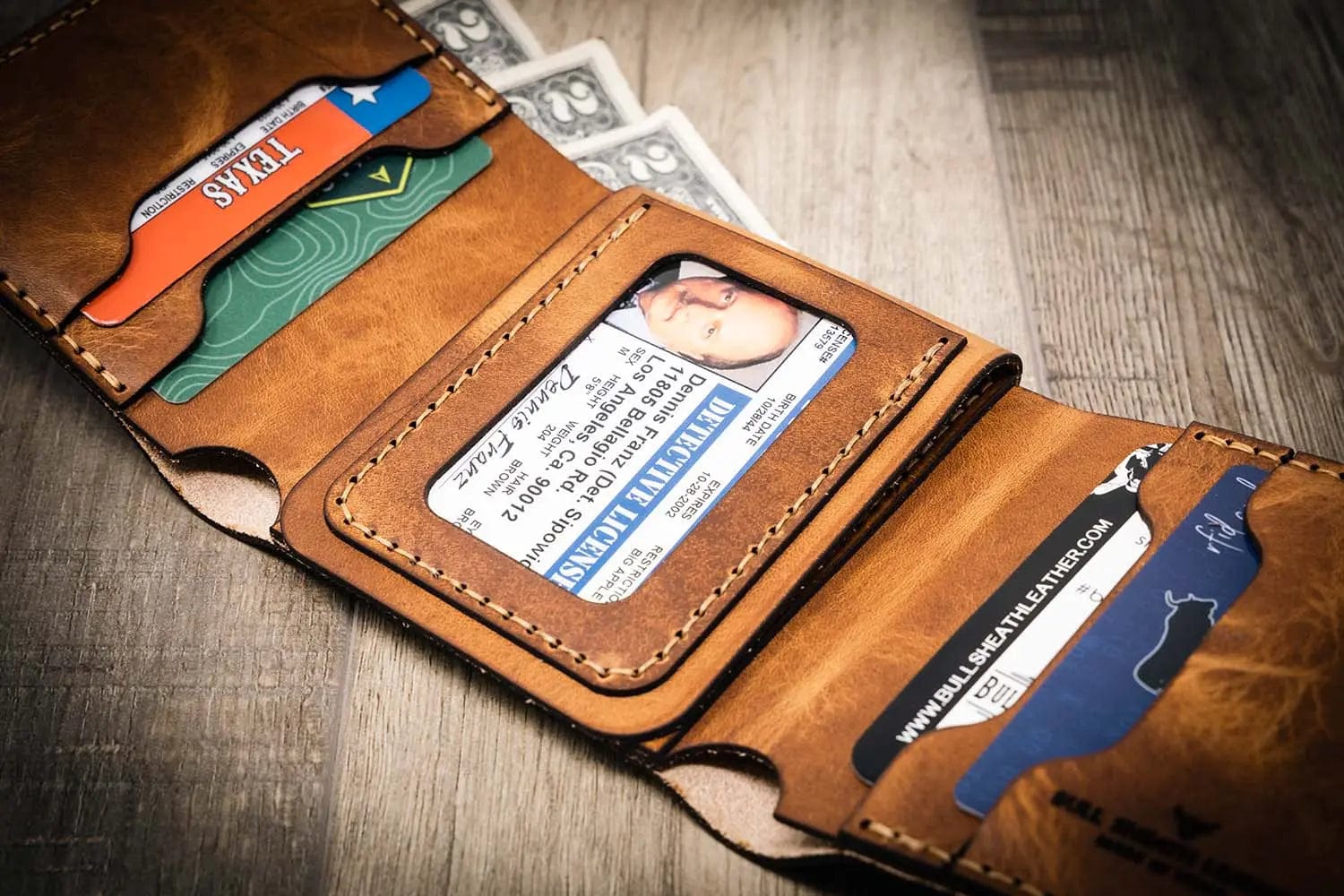 We infuse quality from start to finish, ensuring that your personalized leather wallet is designed to last a lifetime. We use the best Veg-Tanned Full Grain Leather from a USA tannery with 150 years of experience. We produce heirloom quality products by utilizing traditional leather working skills and tools from our studio in Texas. Your Genuine Leather wallet will patina over time, evolving your badge wallet while still displaying the highest quality.