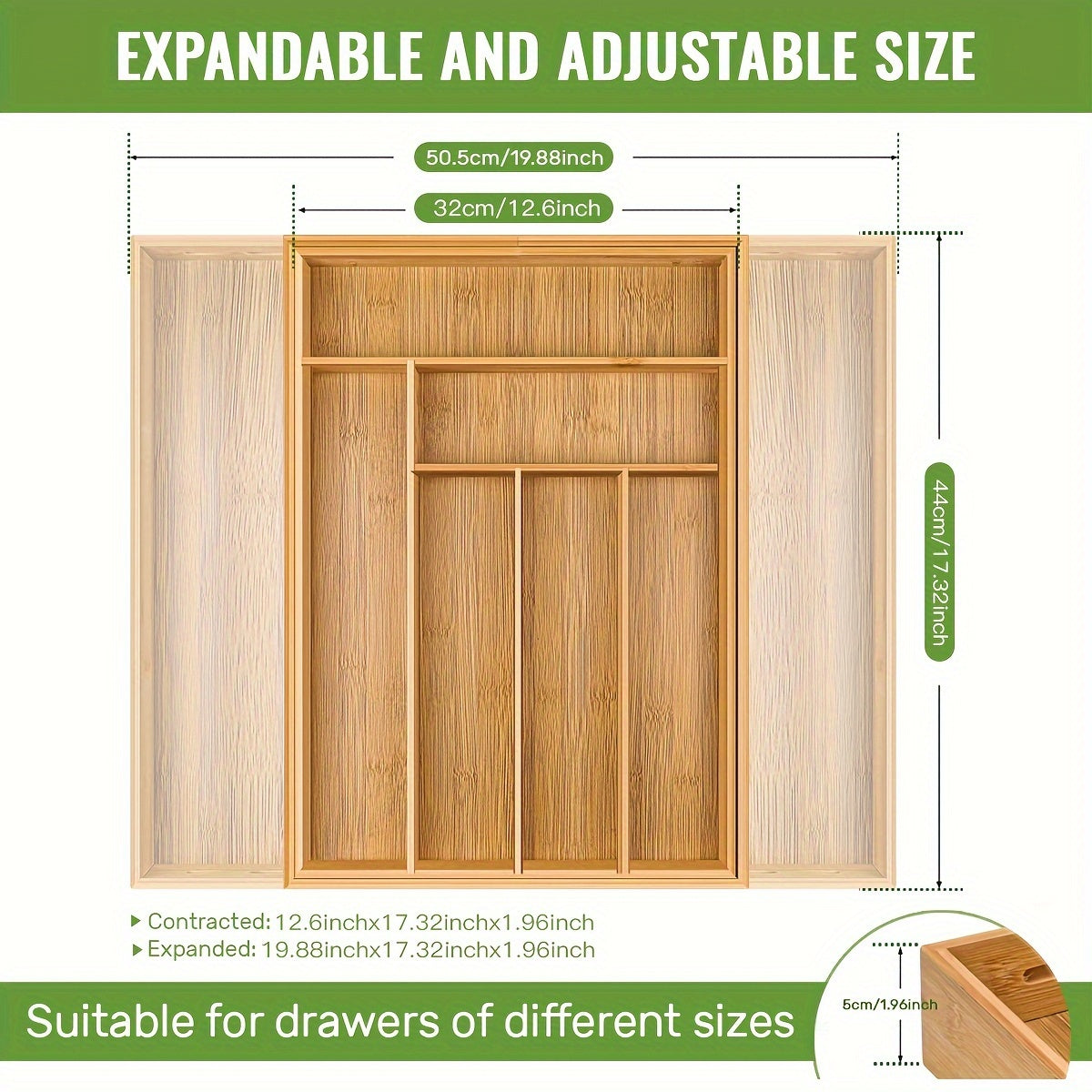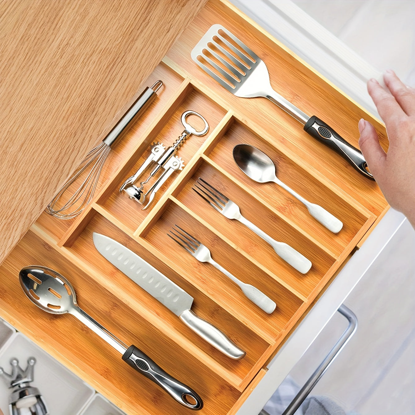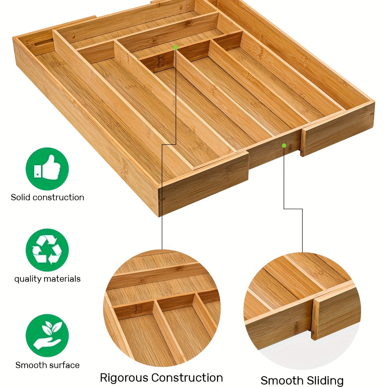 Adjustable Bamboo Cutlery Organizer - Expandable Drawer Divider for