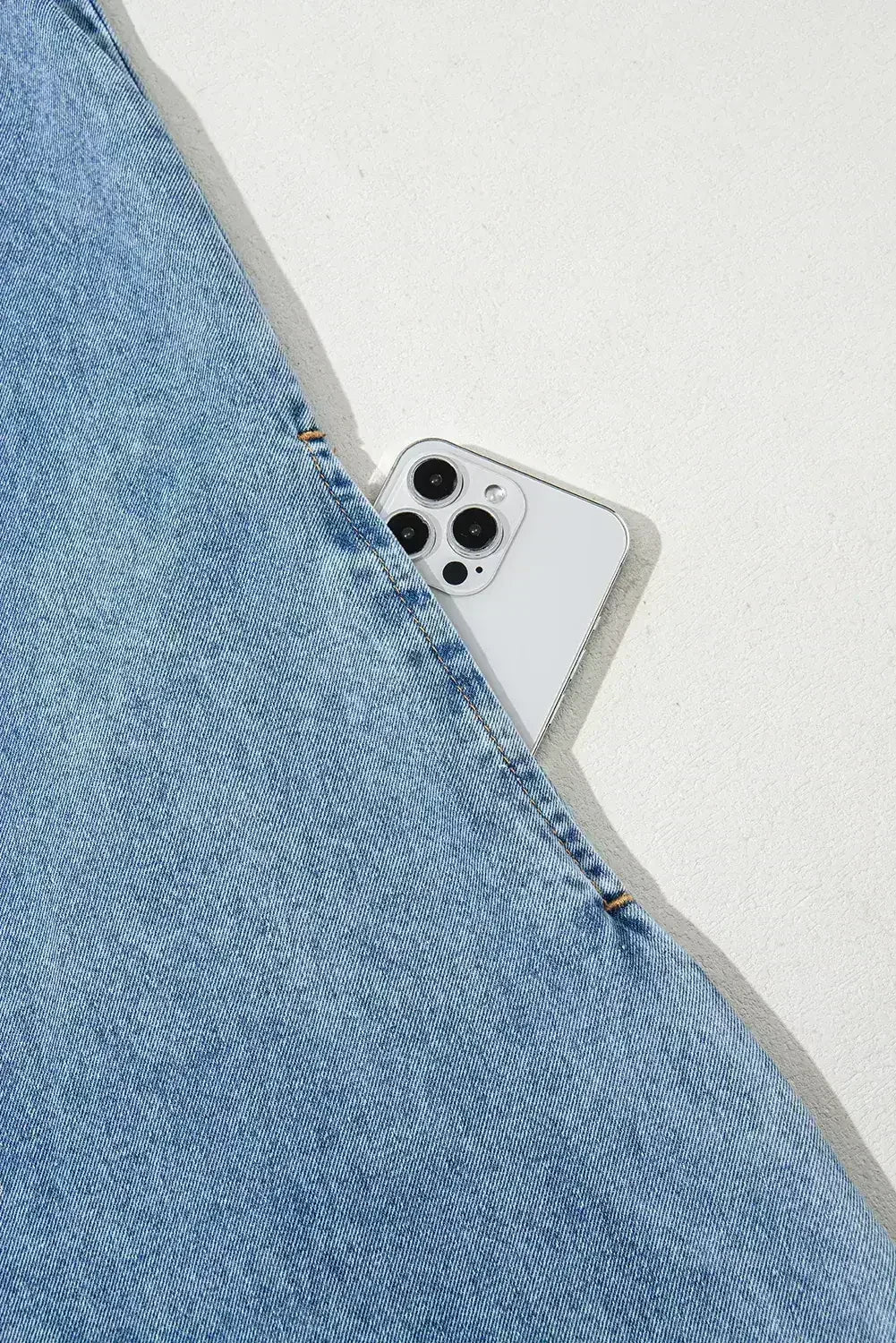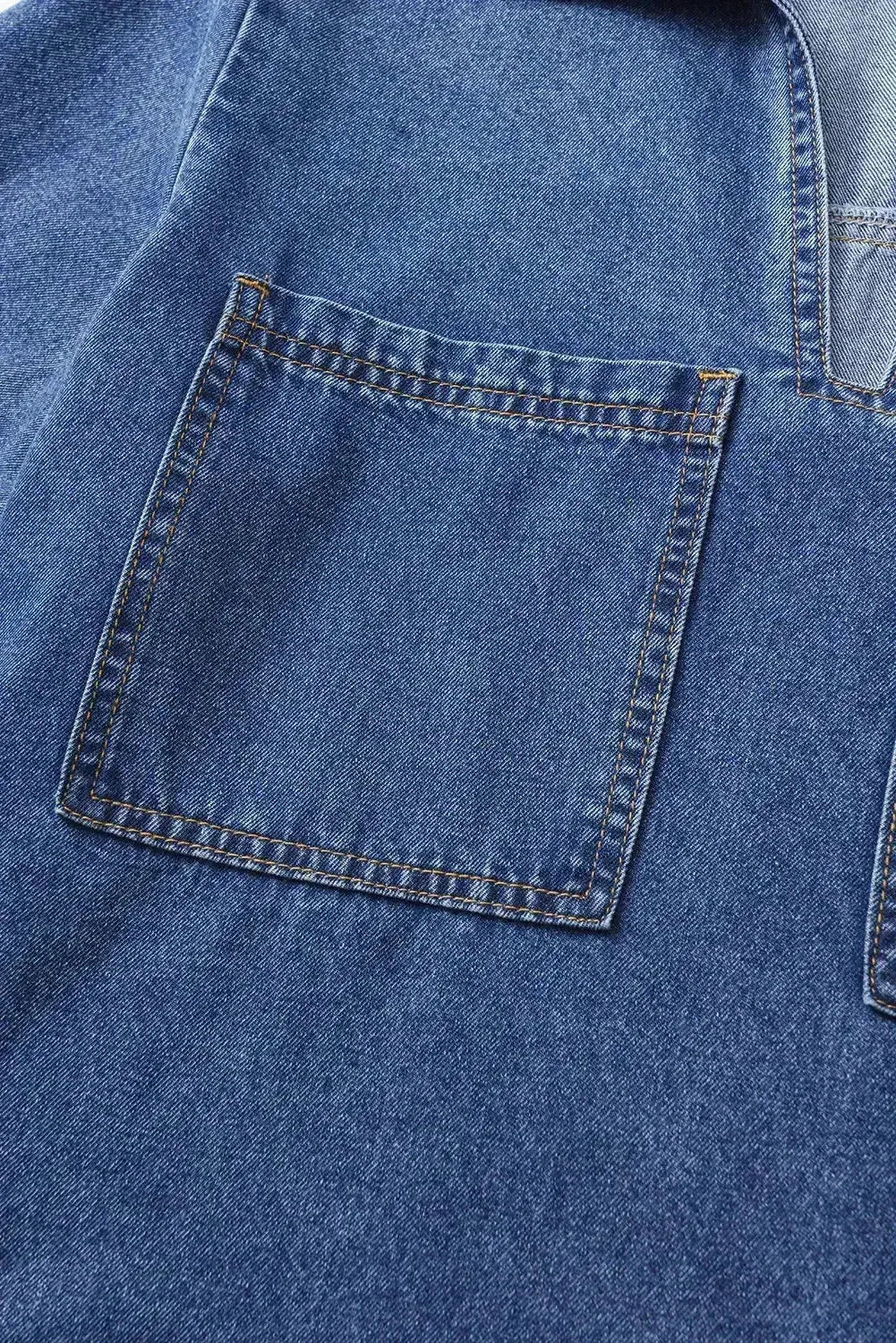 Beau Blue Short Sleeve Collared Chest Pocket Denim Mini Dress