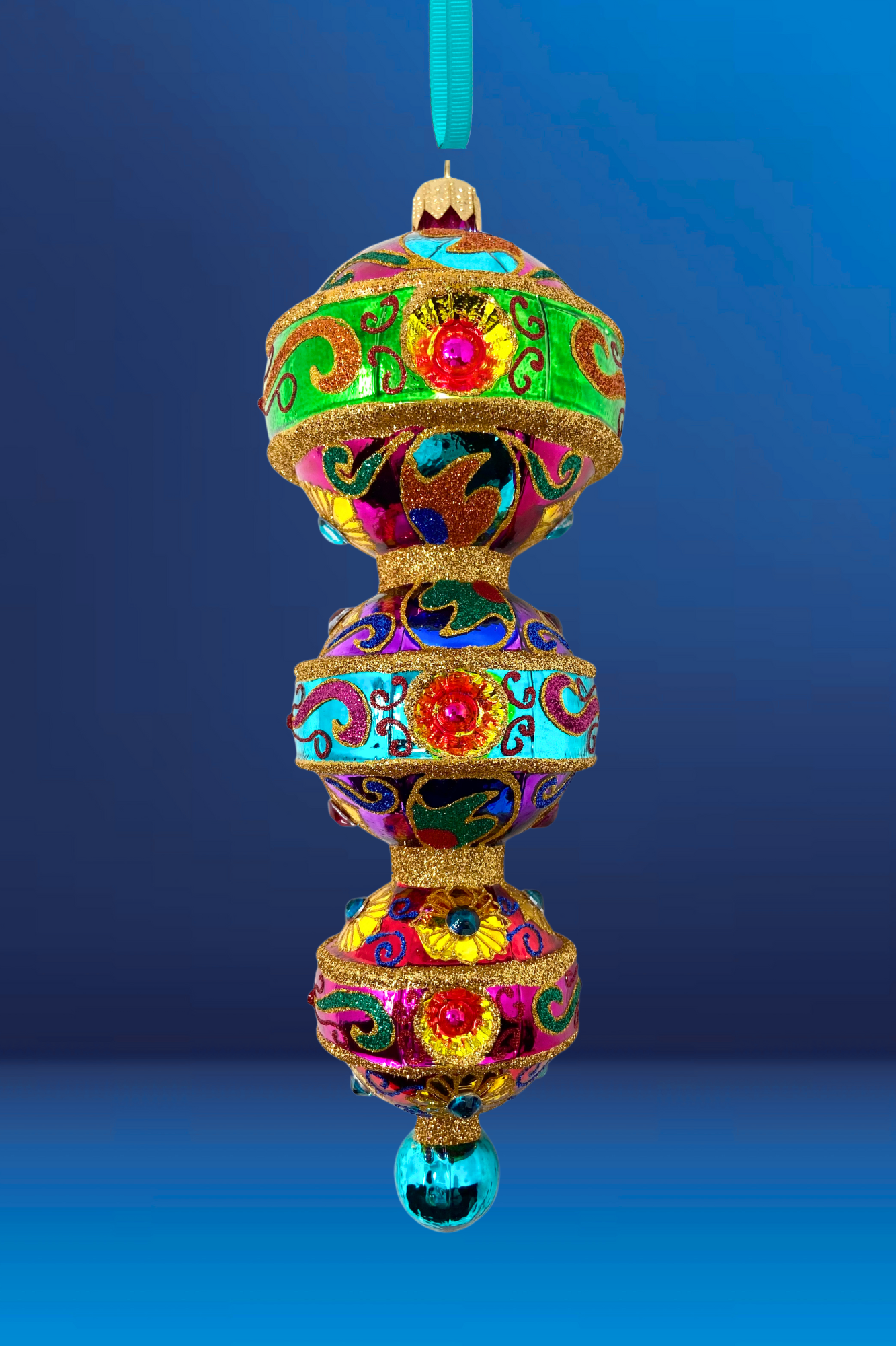 Layers of bold Sicilian hues burst forth in a dazzling display of artistry, where swirling filigree and rich gemstone embellishments dance across a sculpted form. Inspired by Italy’s most opulent festivals, this ornament is a tribute to maximalism at its finest—where more is more, and every detail tells a story of luxury.