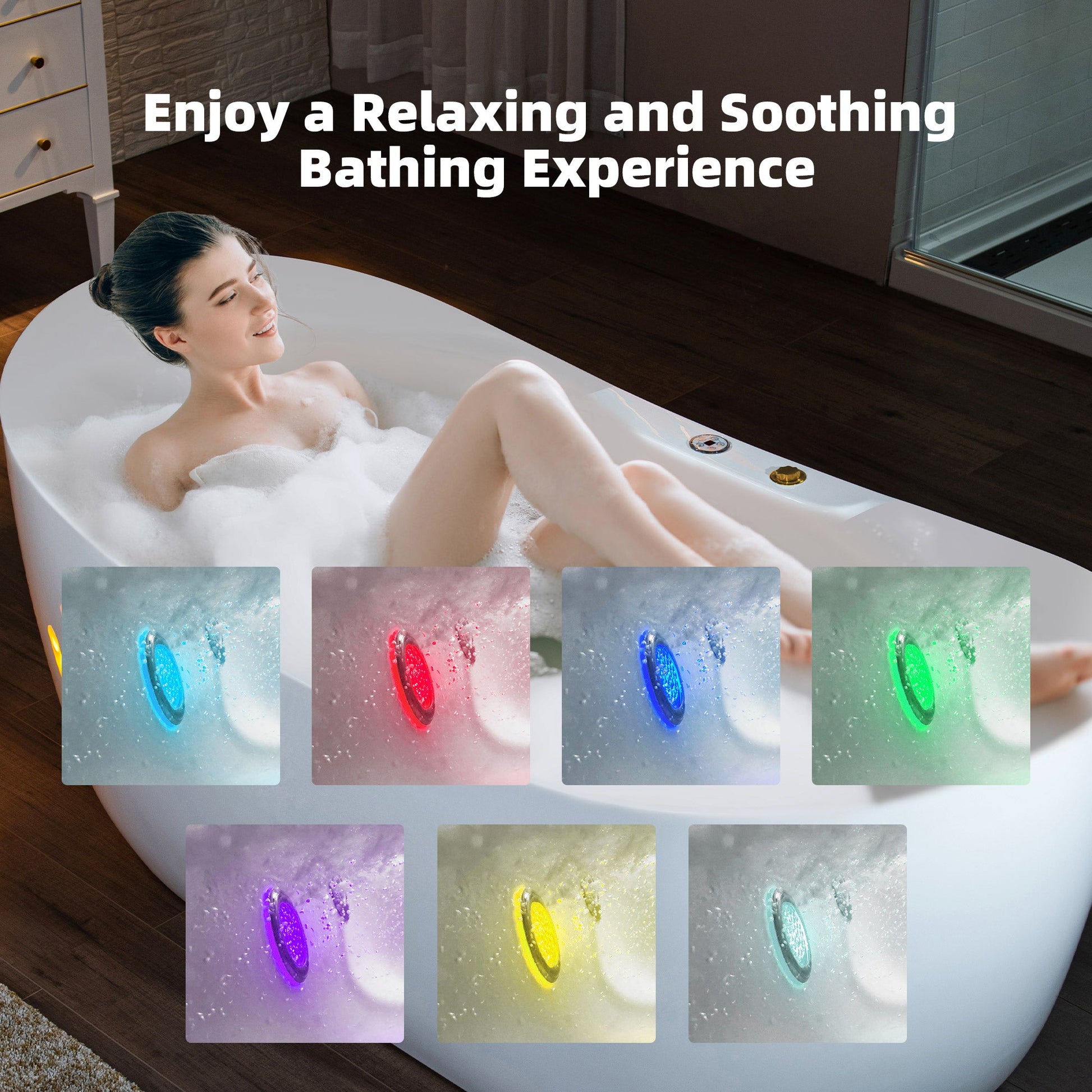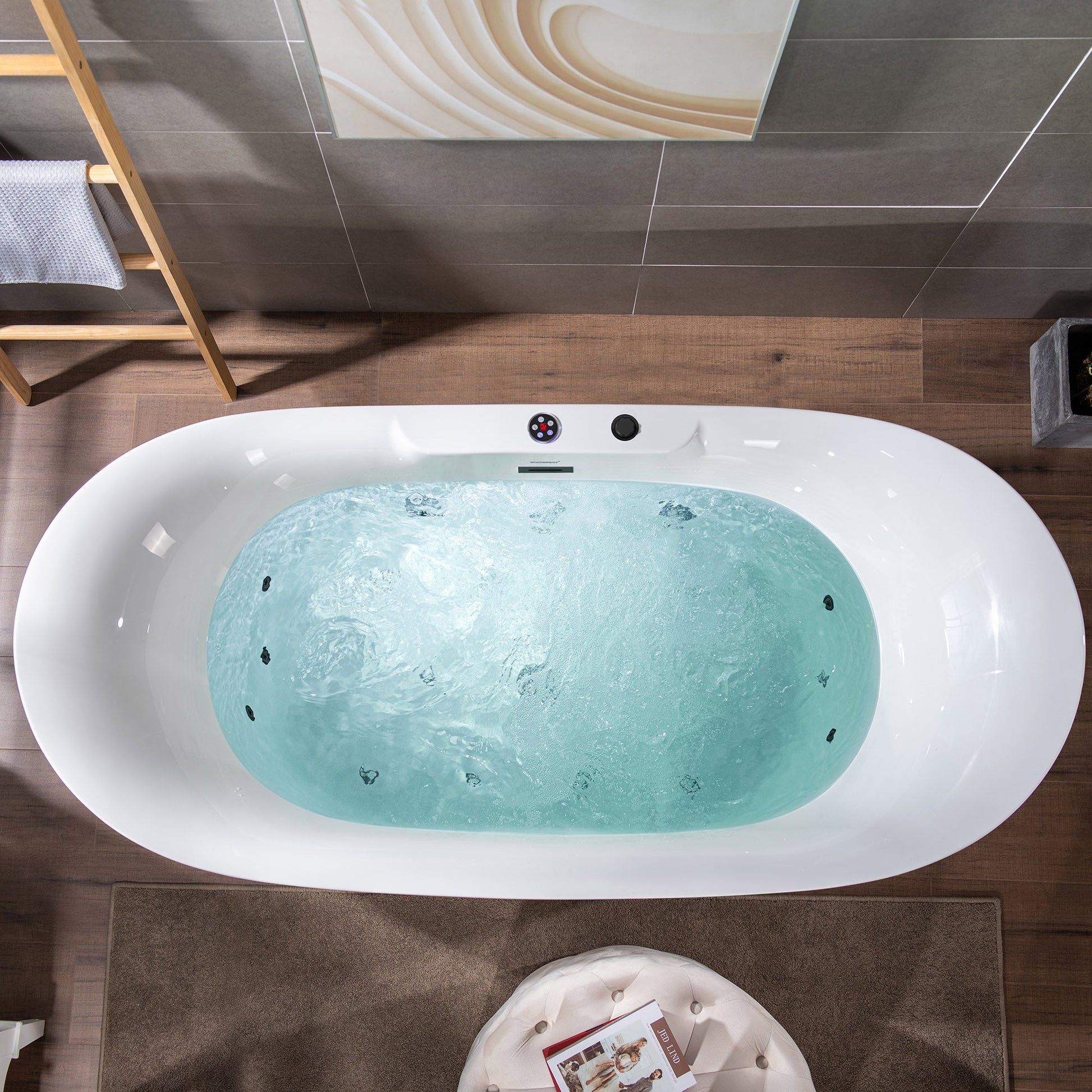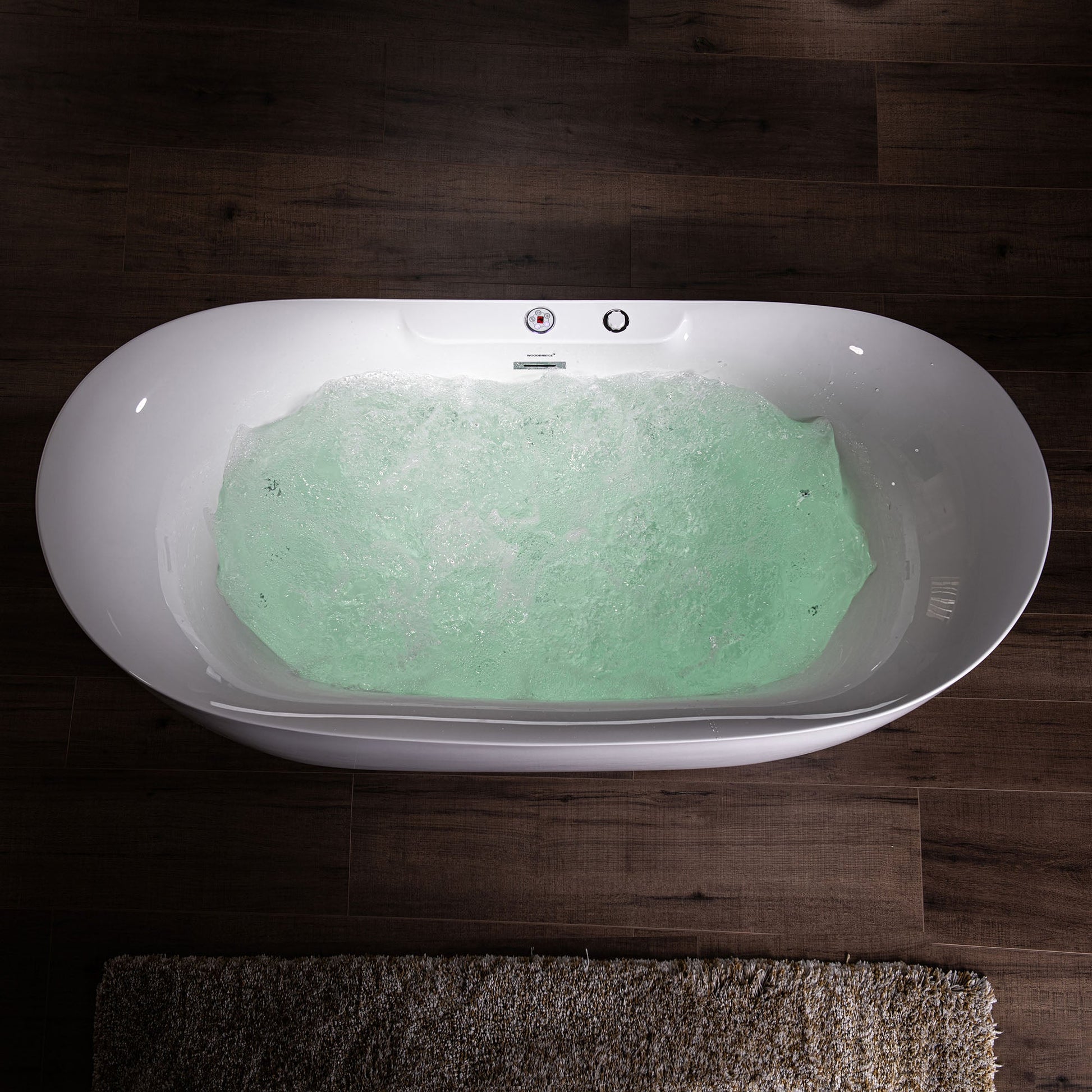 Best Seller WOODBRIDGE 72" x 35-3/8" Whirlpool Water Jetted and Air Bubble Freestanding Heated Soaking Combination Bathtub with LED control panel