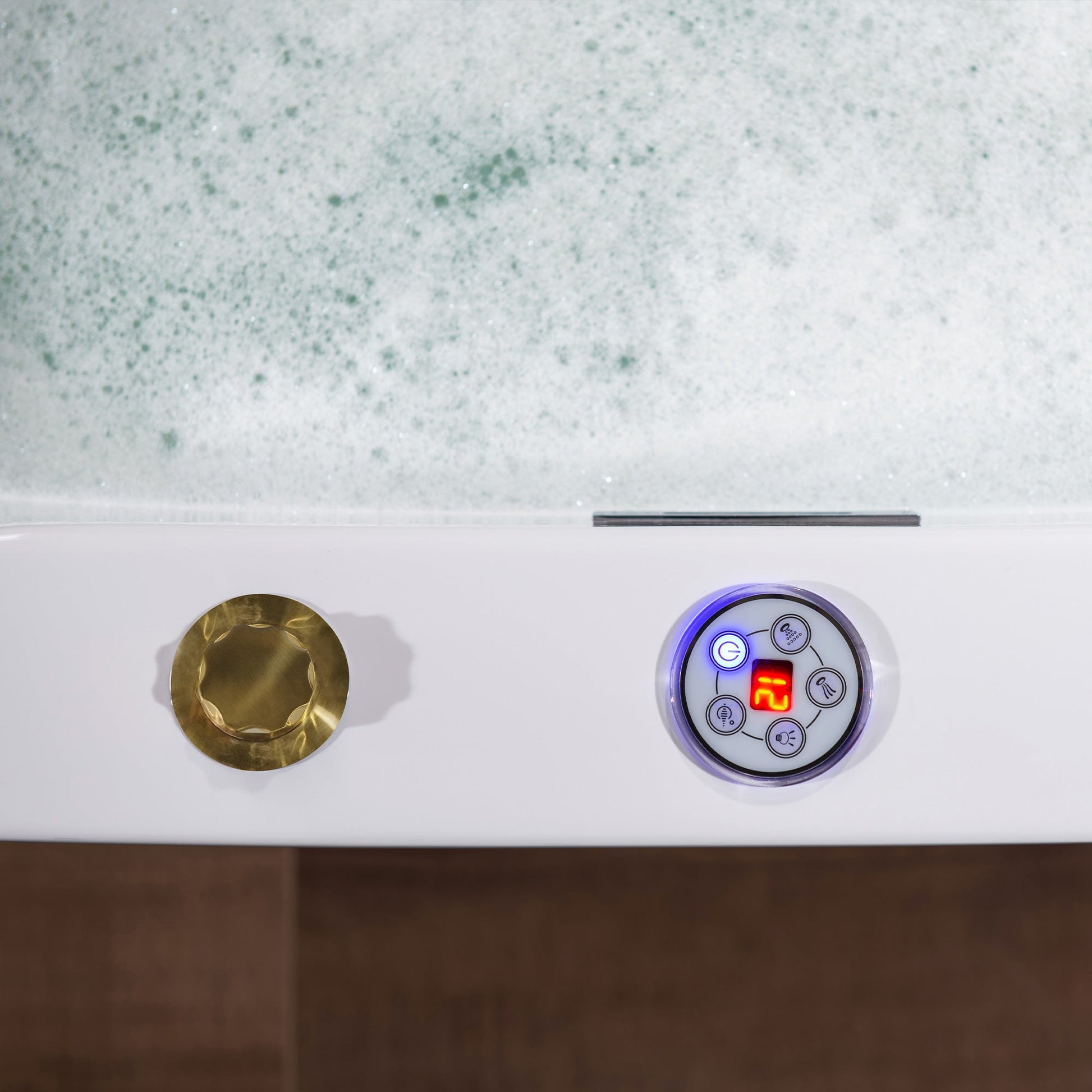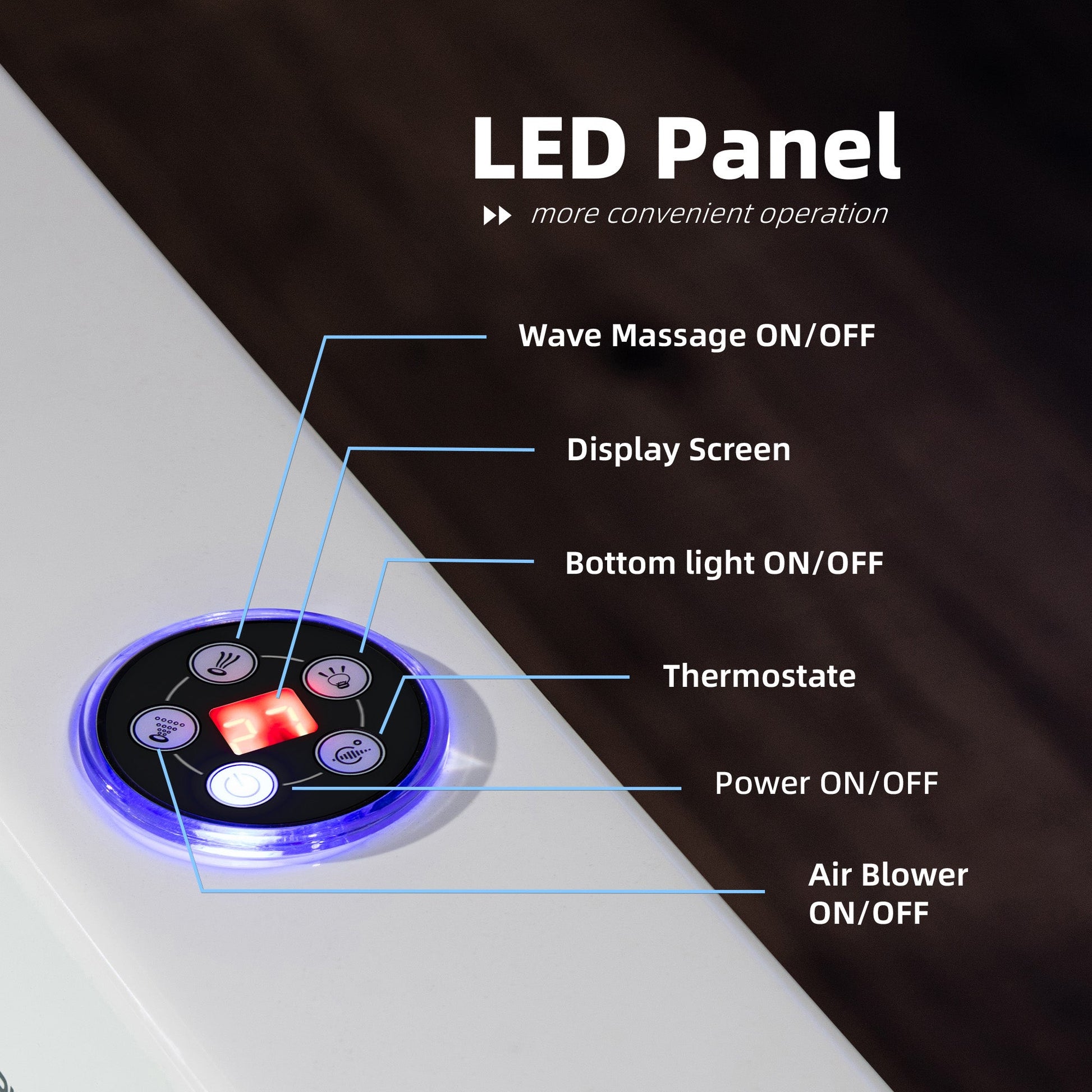 ? [HEATED SOAKING TUB]: With Inline Heater. This bathtub allows for a longer soak without adding more hot water. Setting the water temperature on LED control panel.  Enjoy a hot bath for the entire bathing experience .
