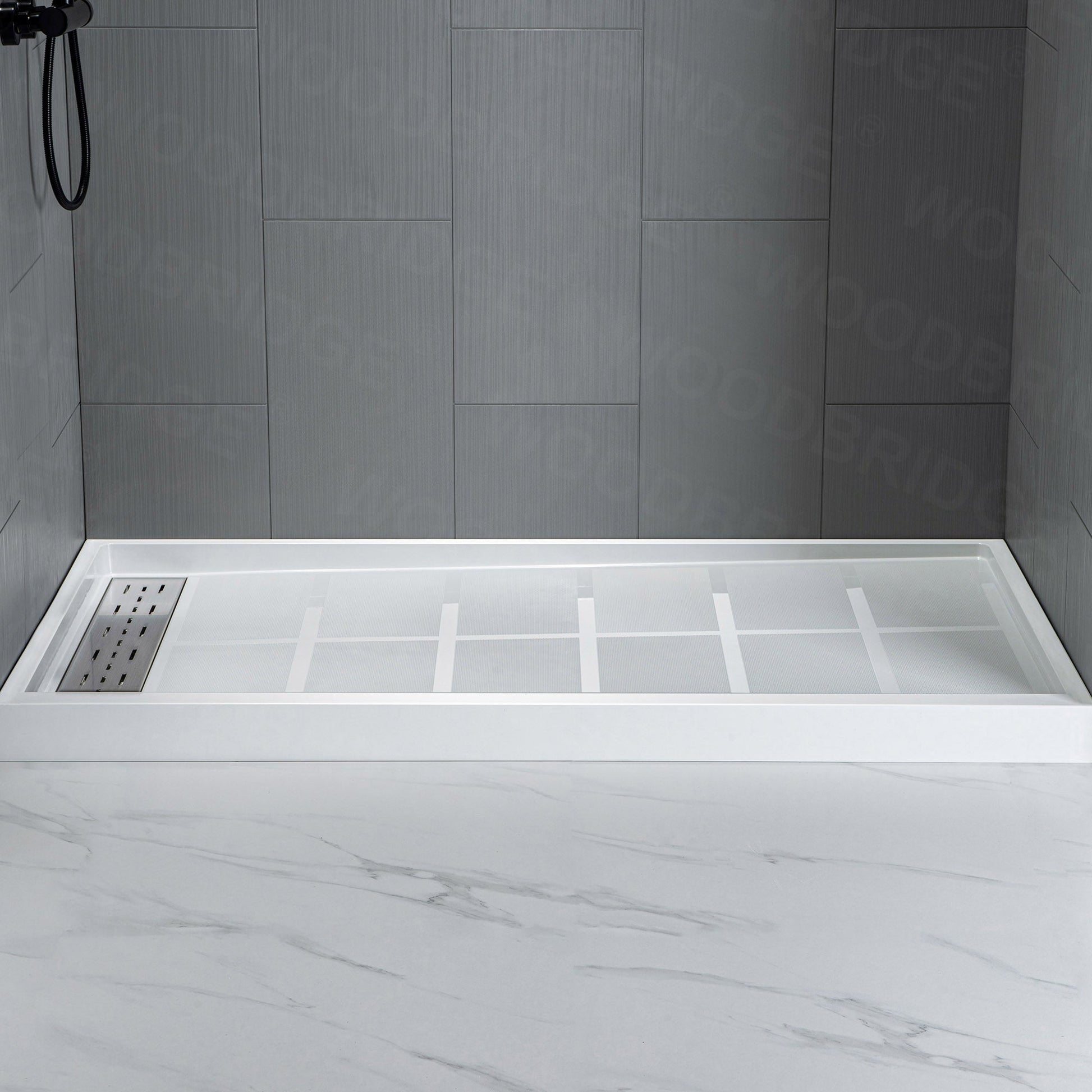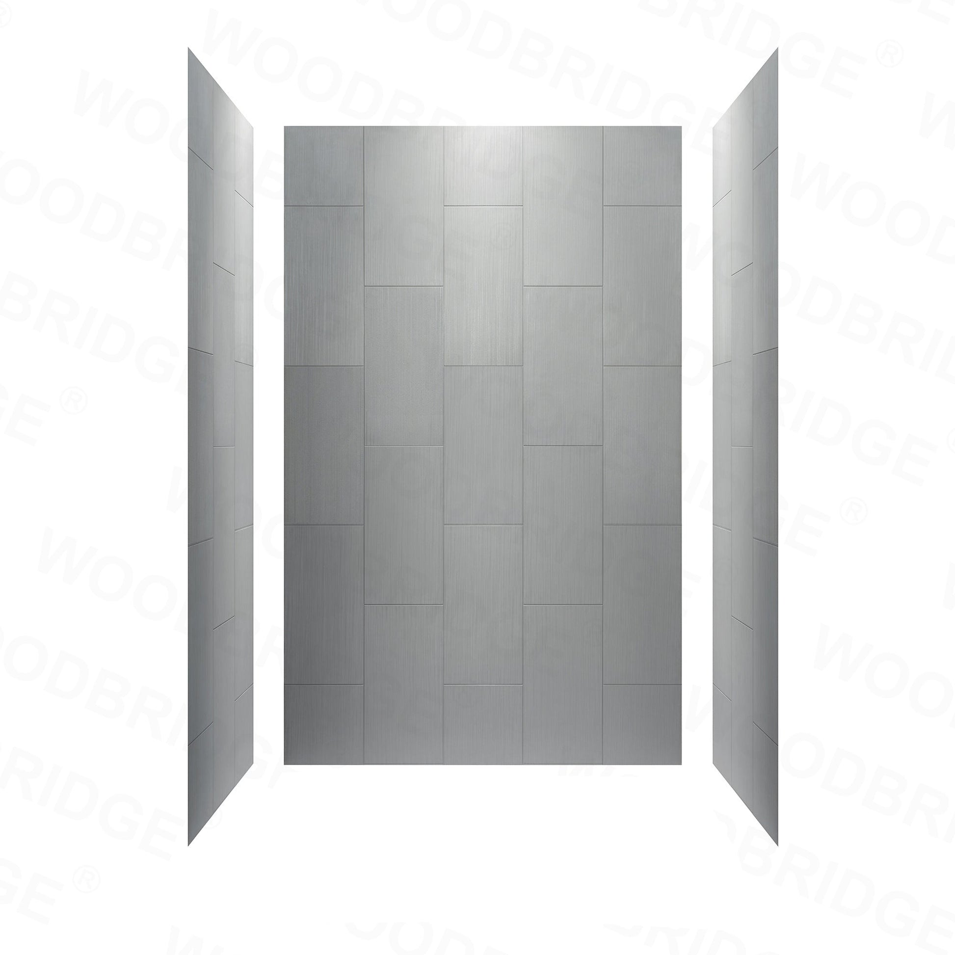 Best Seller WOODBRIDGE Solid Surface 60" W x 96" H Tile Tub and Shower Wall Panel Surround, Quick Install, Cuttable, Stacked Block in a Staggered Vertical Pattern