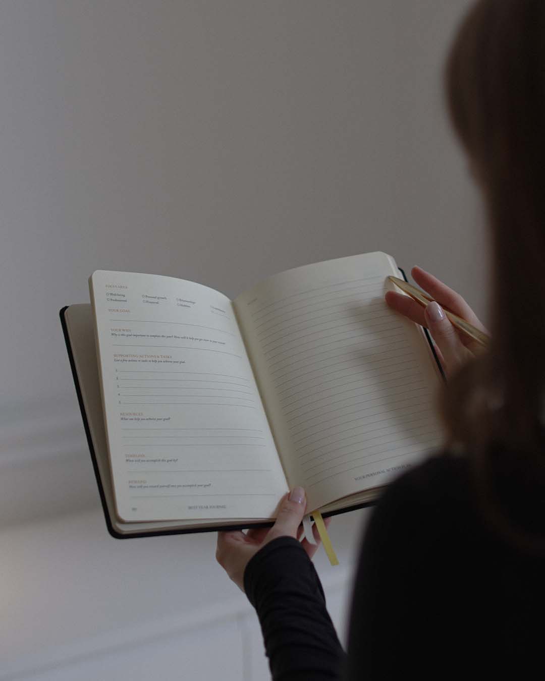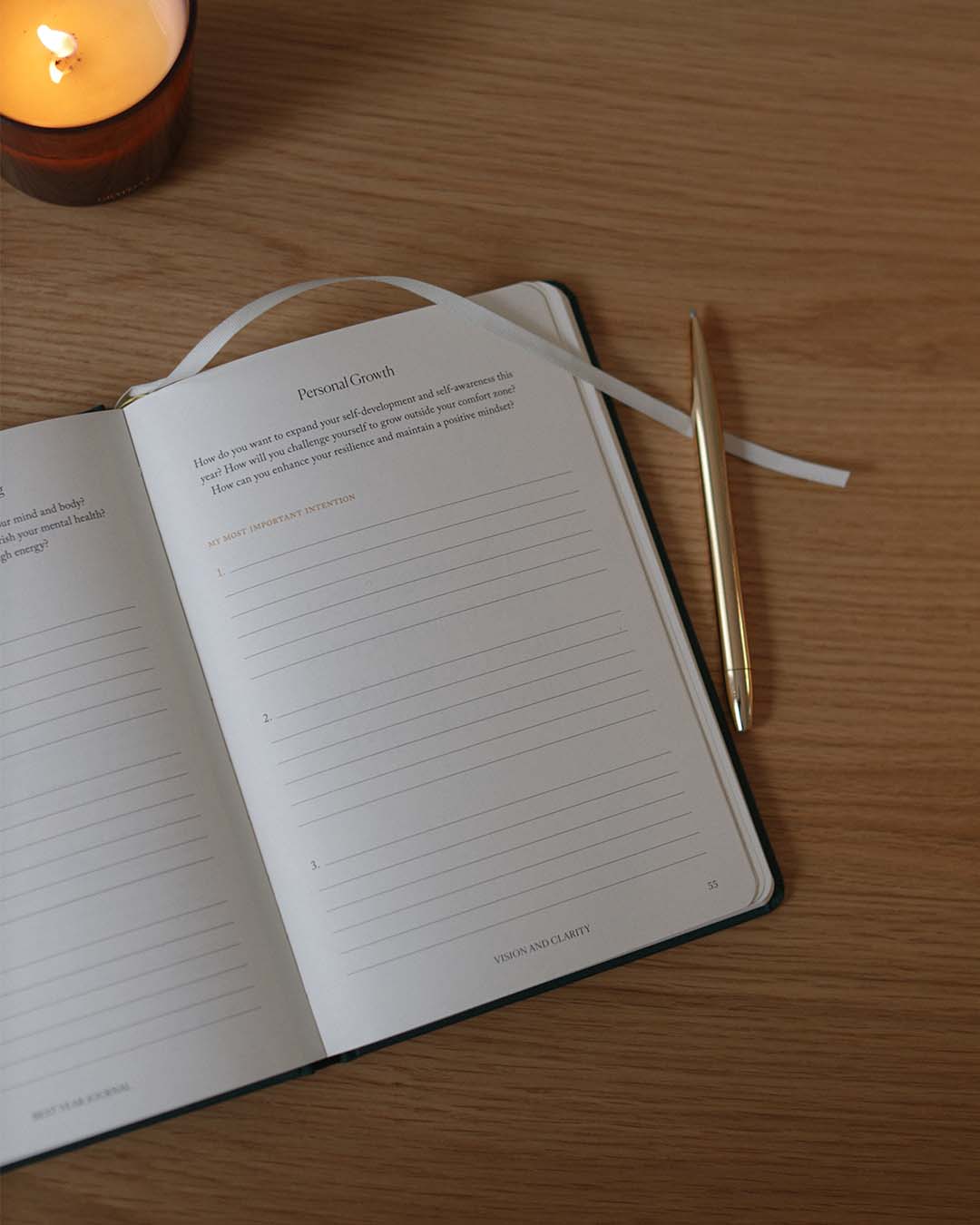This is a journal-planner hybrid for creating a year of clarity and growth. With updated 100+ prompts, it guides you through reflecting on the past year, setting meaningful intentions, and transforming them into actionable steps. Weekly reviews help you stay on track and adapt as you go. No pressure, just steady progress.