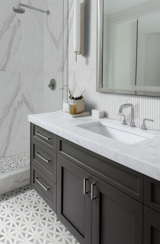 Bianco Dolomite Geometrica Tile takes the timeless natural marble and crafts it into a contemporary pattern, creating a simply stunning combination. These gorgeous tiles are recommended for a wide range of design installations and are suitable to use as both backsplash tile and floor tile. They coordinate effortlessly with other natural marble tiles in the collection as well as a wide range of other natural marble mosaics, tiles, and slabs in our vast inventory.