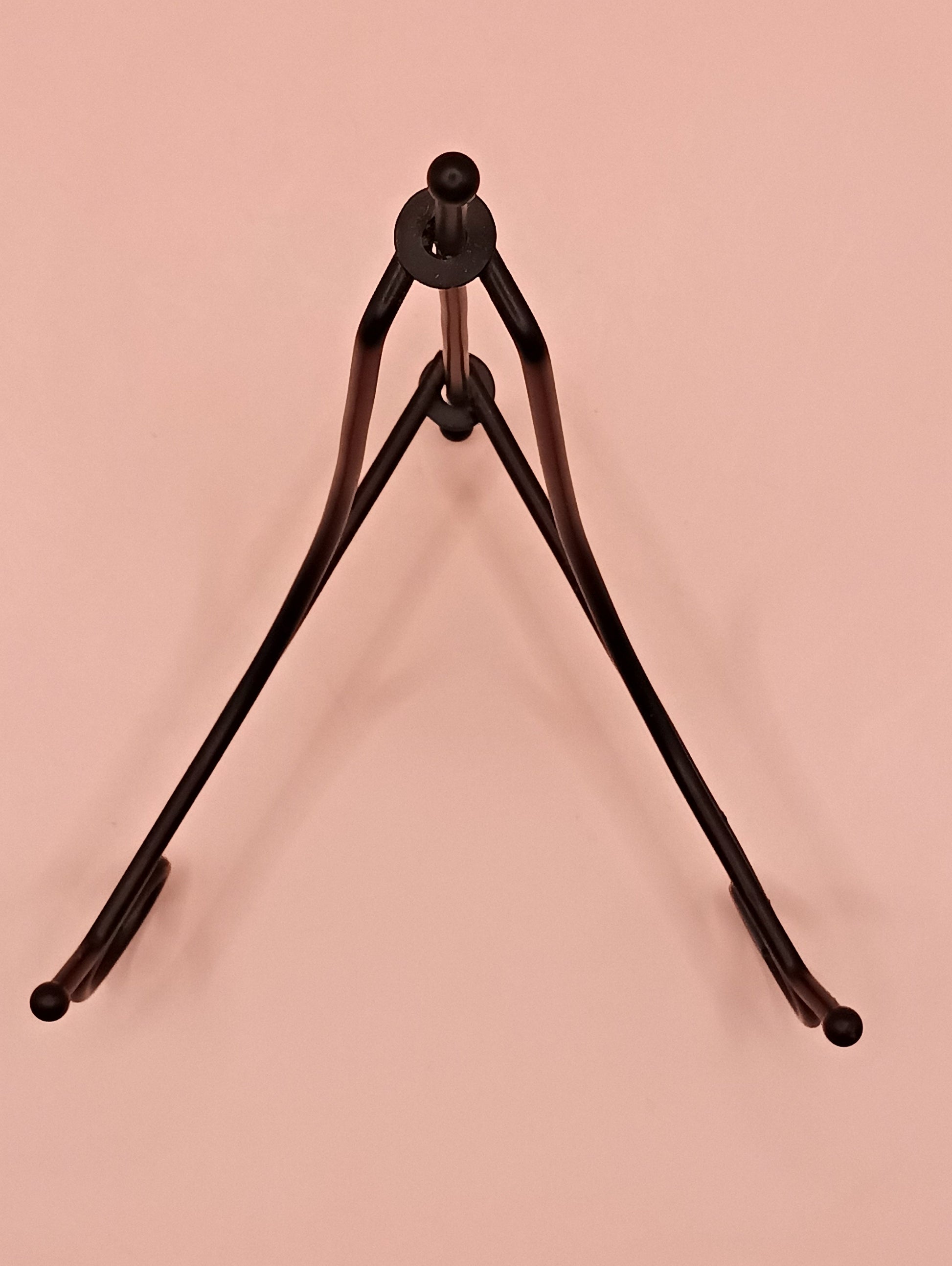 Add a touch of timeless charm to your home or office with this black metal Display Easel. Perfect for showcasing your favorite collectibles, shells, small artwork, plates, or photographs.