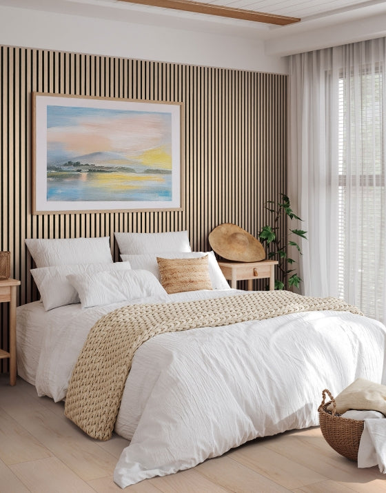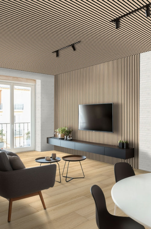 Unleash the perfect blend of design and sound with the Blonde Acoustic Wood Slat Wall Panels—where stunning coastal blonde tones meet top-tier acoustic performance. These fluted wood panels do more than just elevate your space; they transform it into a quiet haven. Engineered to minimize loud sounds from outside the room while providing exceptional sound absorption within, they bring both clarity and tranquility. With no need for staining or sanding, these panels offer effortless elegance and unbeatable acoustics. Ideal for home theaters, recording studios, or any space craving style and sound control, they’re the ultimate upgrade for any room.