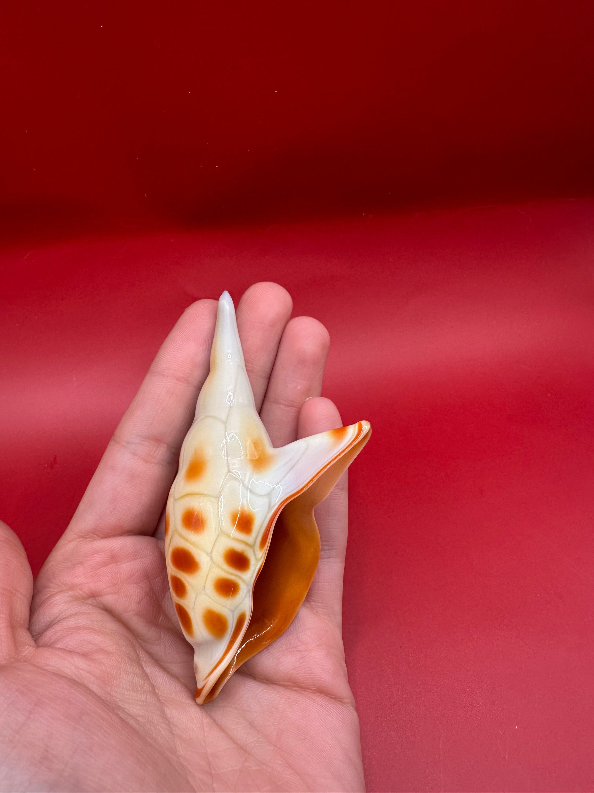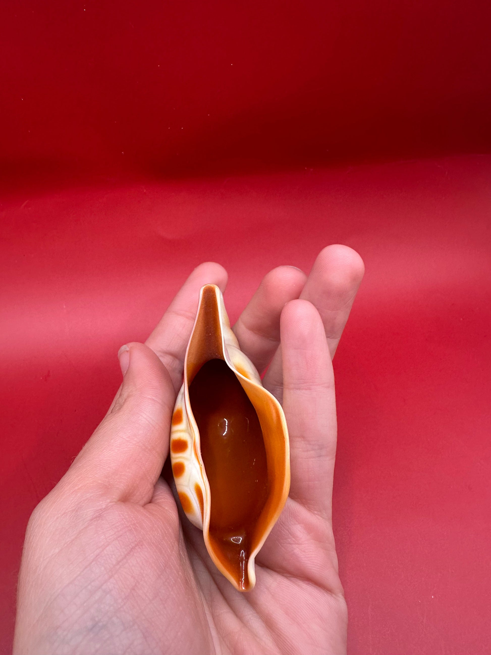 Bring a touch of ocean-inspired elegance to your space with this Blown Glass Shell Sculpture. Measuring approximately 3.5 inches, this petite coastal accent showcases a glossy white base highlighted with warm amber and orange tones, giving it the look of a naturally patterned seashell. Its fluid glass form captures the beauty of the sea while adding a refined artistic touch to your home decor. Perfect for displaying on shelves, desks, or as part of a seaside-inspired centerpiece, this glass shell elevates any space with coastal charm.