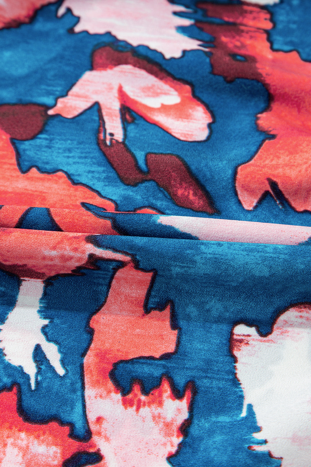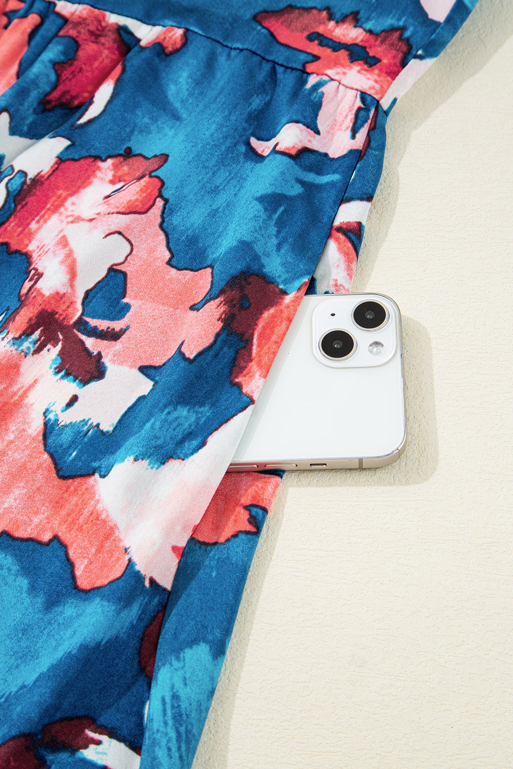 Blue Abstract Print Shirred Ruffled Short Sleeve Tiered Plus Size Mini Dress