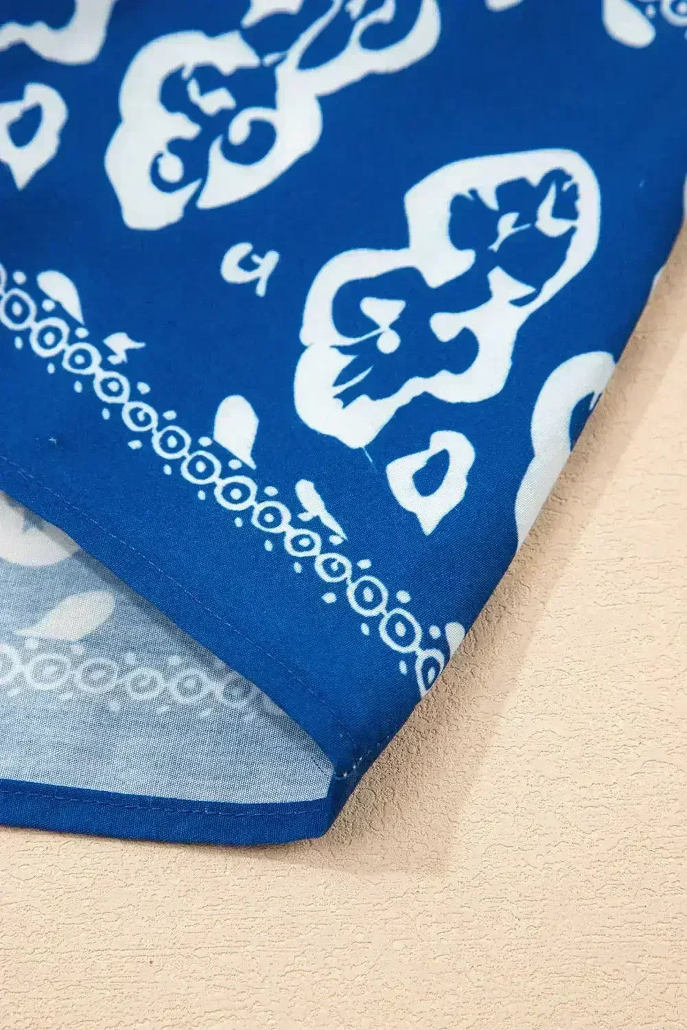 Blue Floral Ruffle Hem Pop of Color Neckline Dress