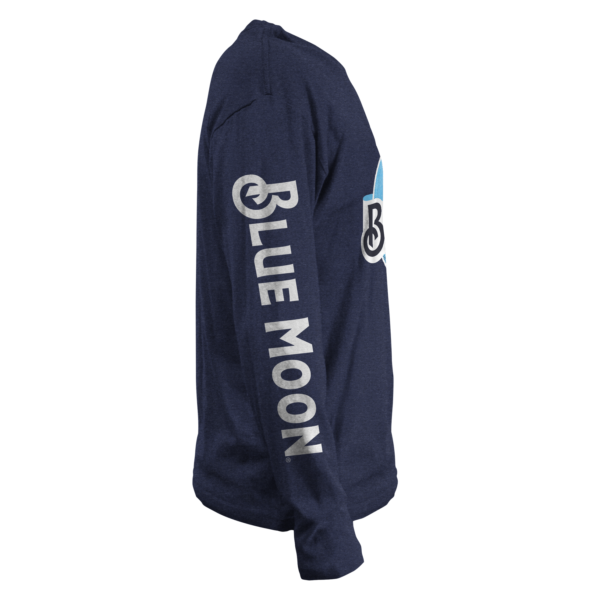 The story goes that Blue Moon Brewing Company got its name from the saying that "something this good comes around only once in a blue moon". We agree, and our team decided to pay tribute to this artfully crafted brew by featuring the classic Blue Moon logo on this long sleeve graphic tee. For extra visual interest, we gave the right sleeve an added twist by featuring the "Blue Moon" text in the company's signature font.