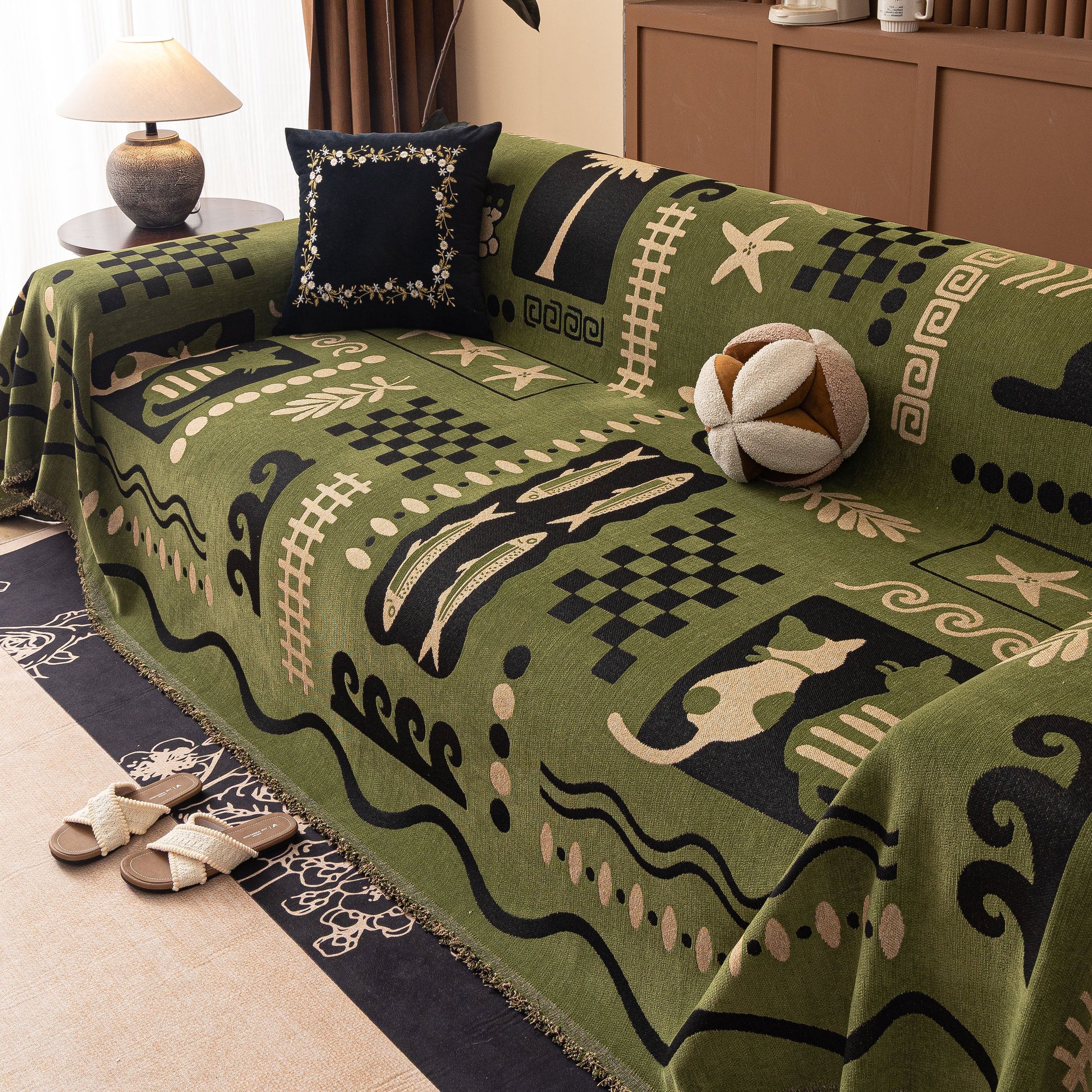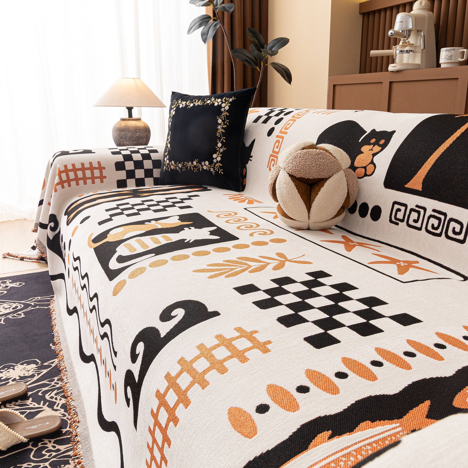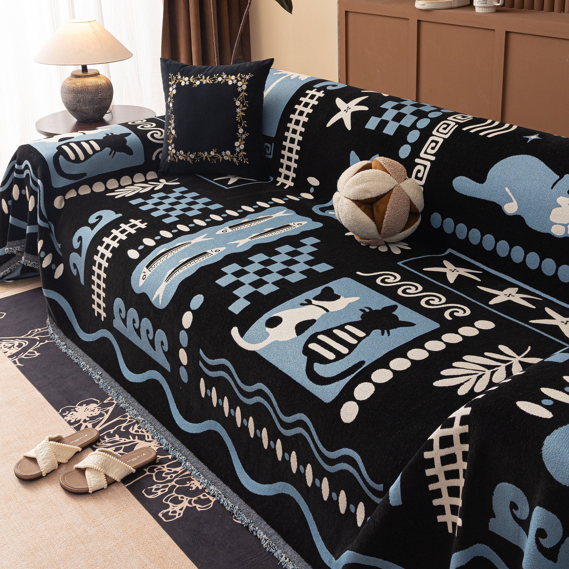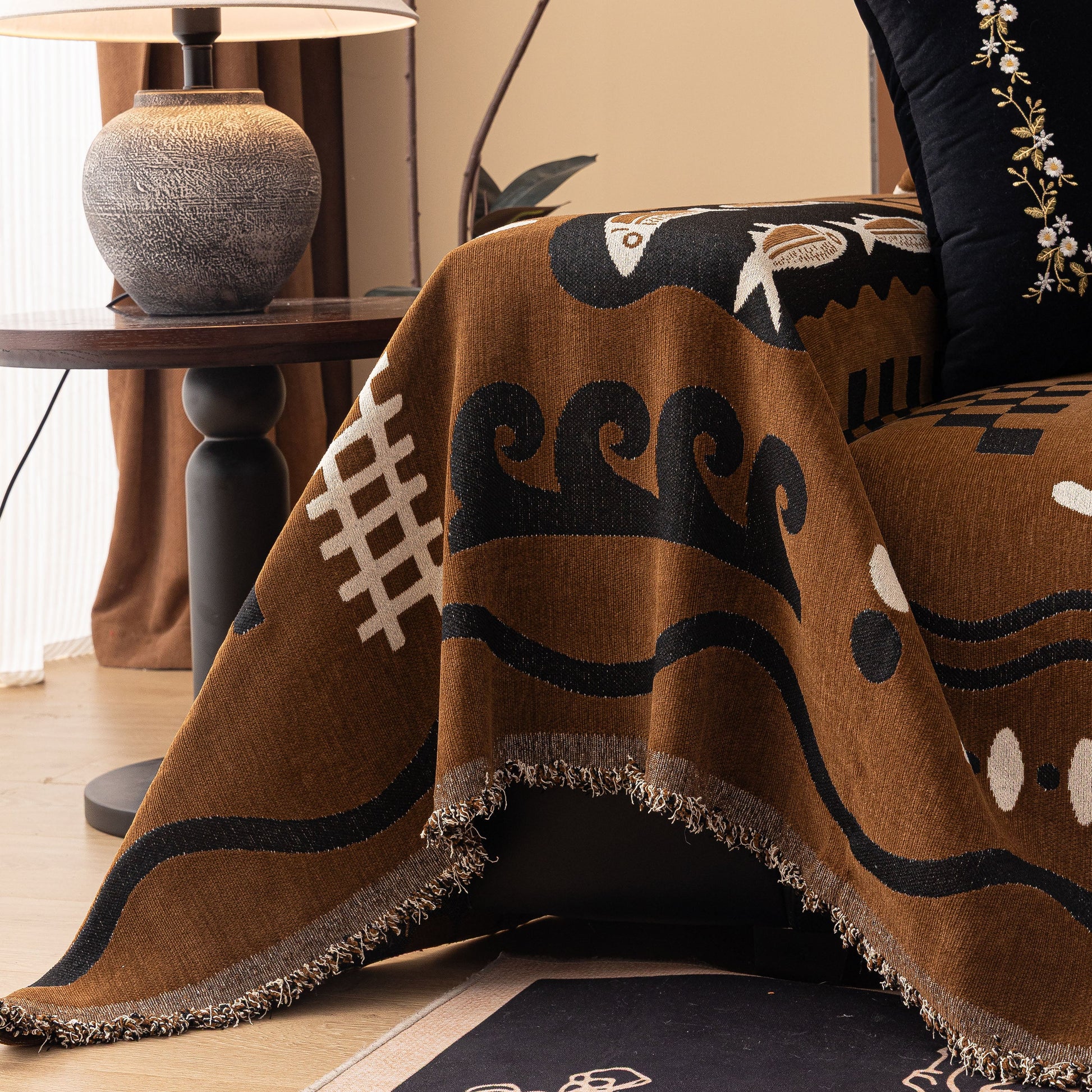Made from a substantial, high-quality chenille, this cover combines a luxuriously soft feel with dependable durability. It drapes effortlessly over your furniture, acting as a formidable shield against daily wear, spills, and pet hair. More than just a sofa protector, its generous cut and non-fitted design make it a truly versatile piece, easily repurposed as a statement bedspread, a large blanket, or even a decorative wall tapestry.