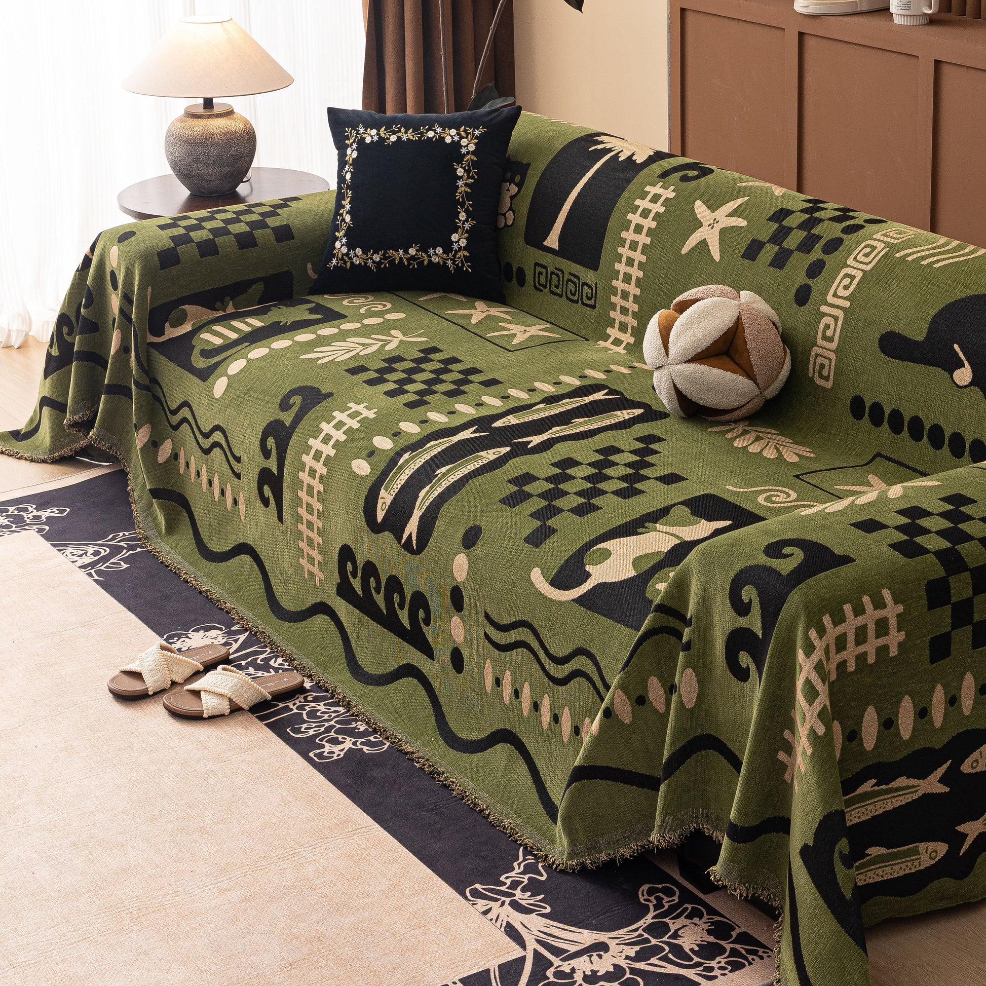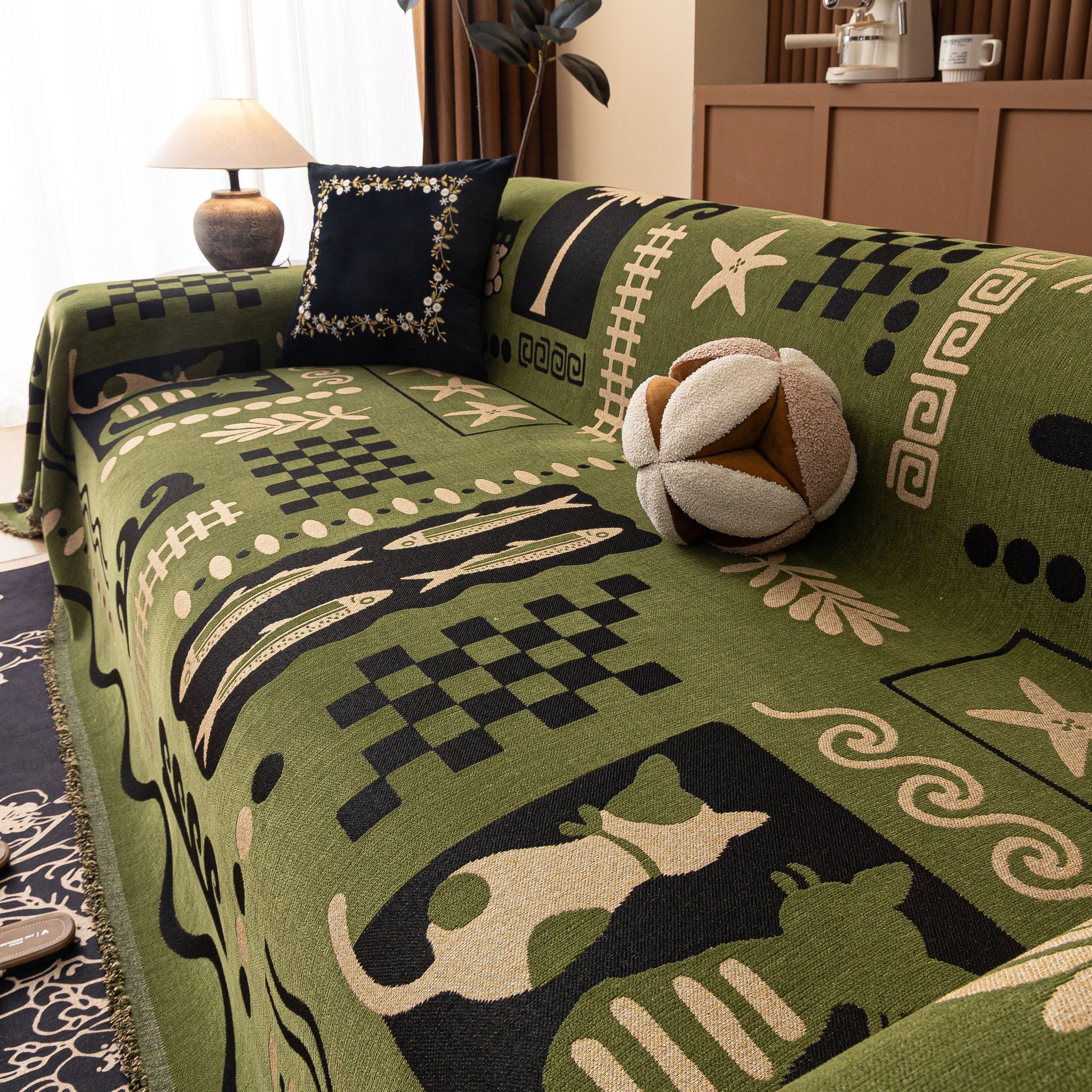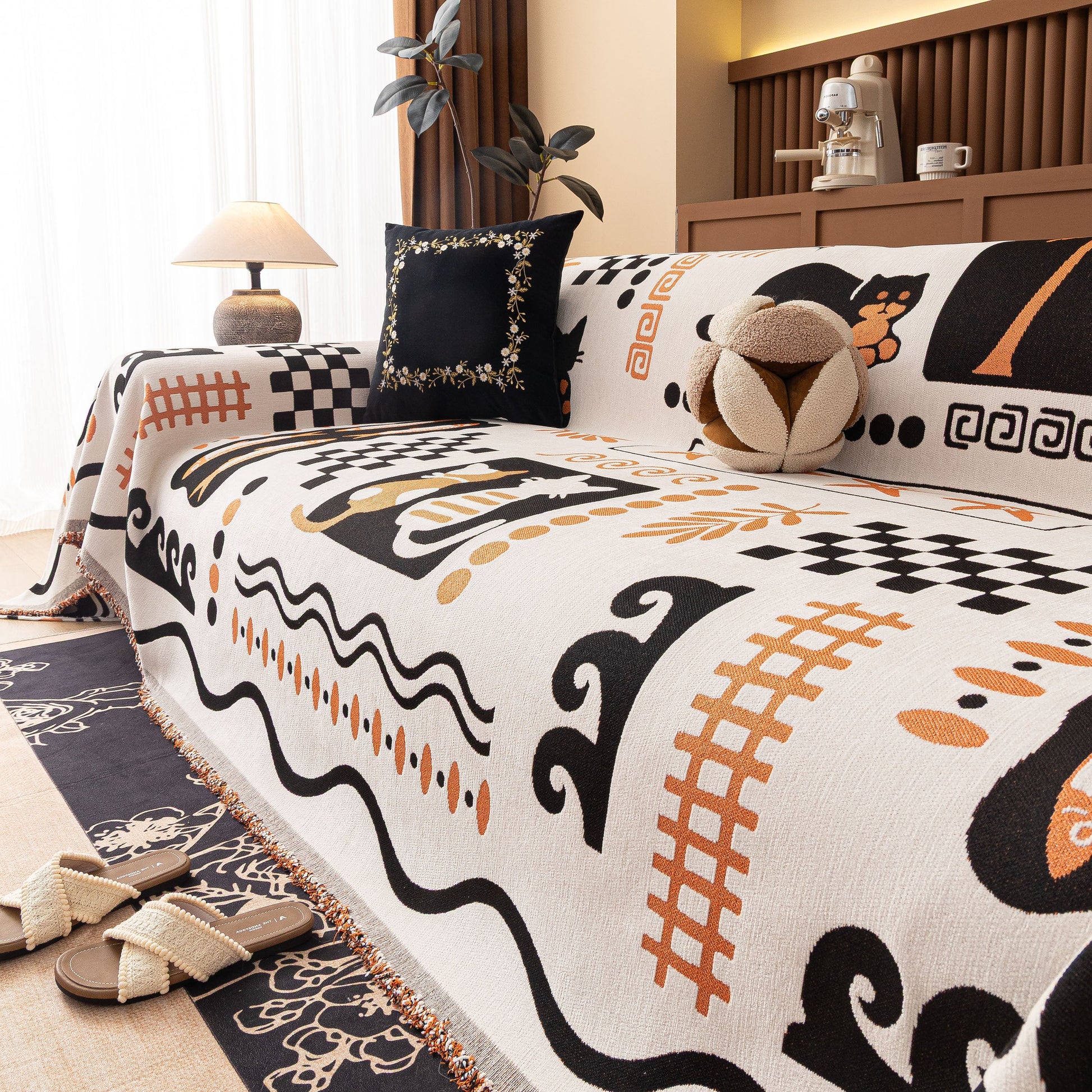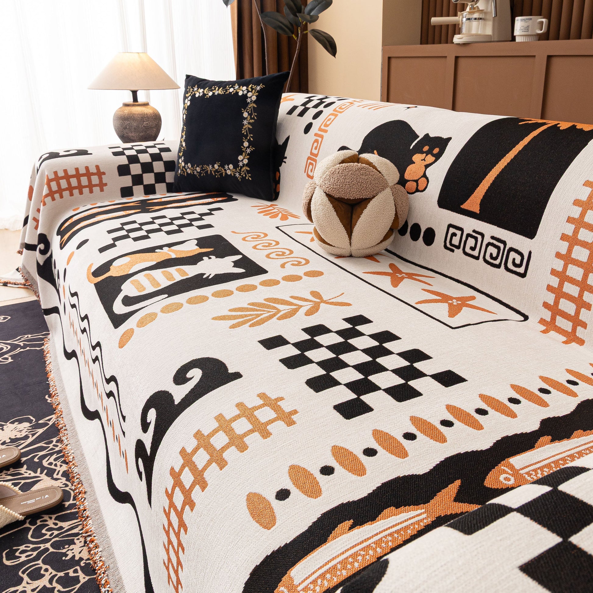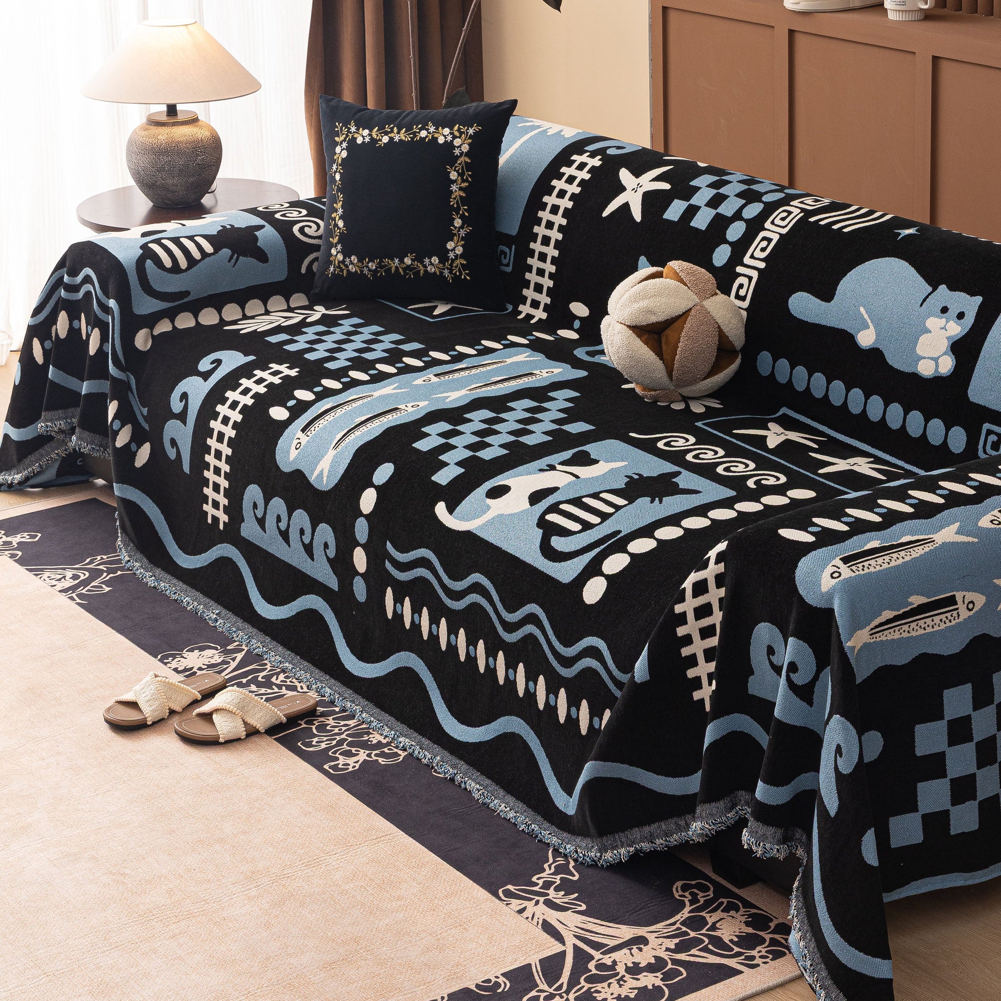 Made from a substantial, high-quality chenille, this cover combines a luxuriously soft feel with dependable durability. It drapes effortlessly over your furniture, acting as a formidable shield against daily wear, spills, and pet hair. More than just a sofa protector, its generous cut and non-fitted design make it a truly versatile piece, easily repurposed as a statement bedspread, a large blanket, or even a decorative wall tapestry.