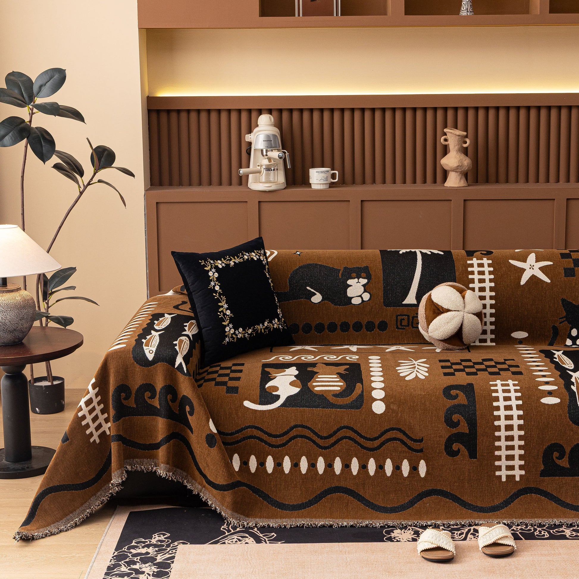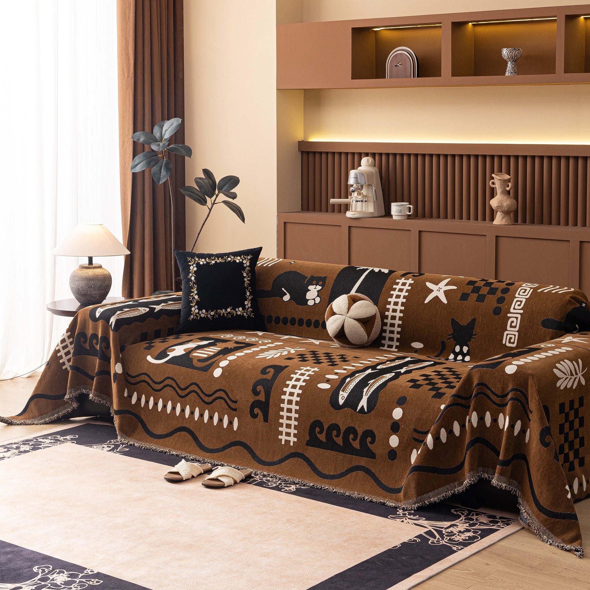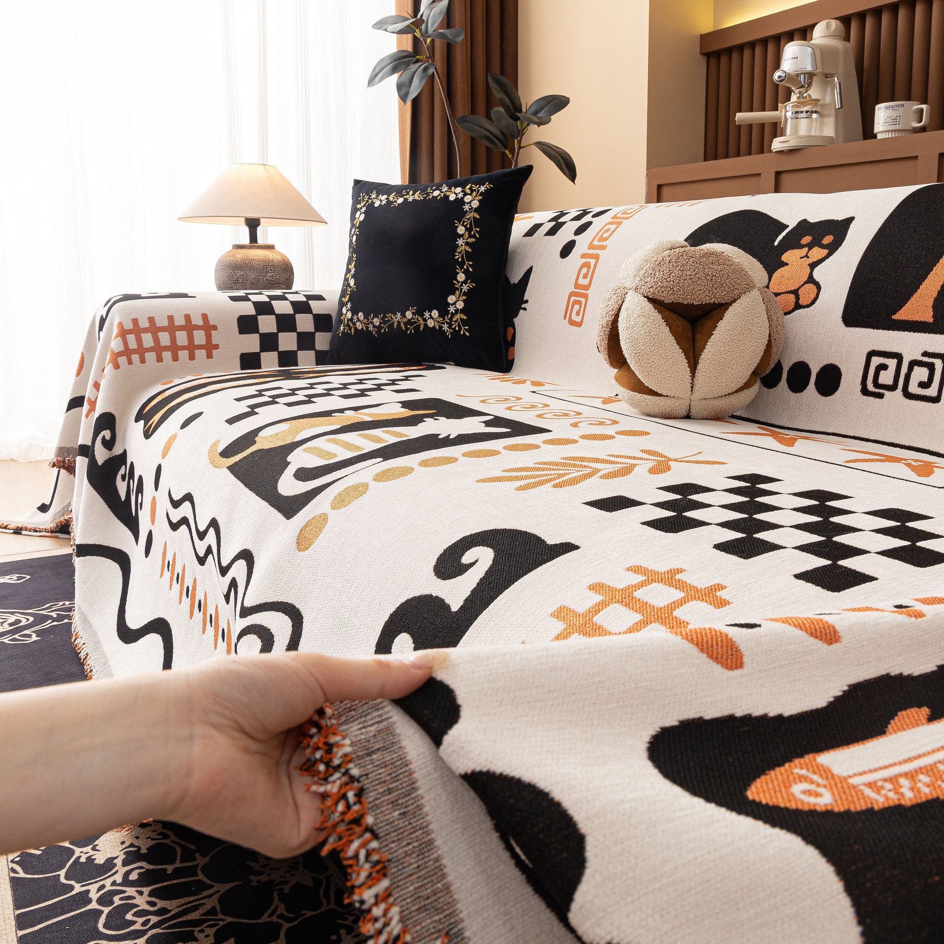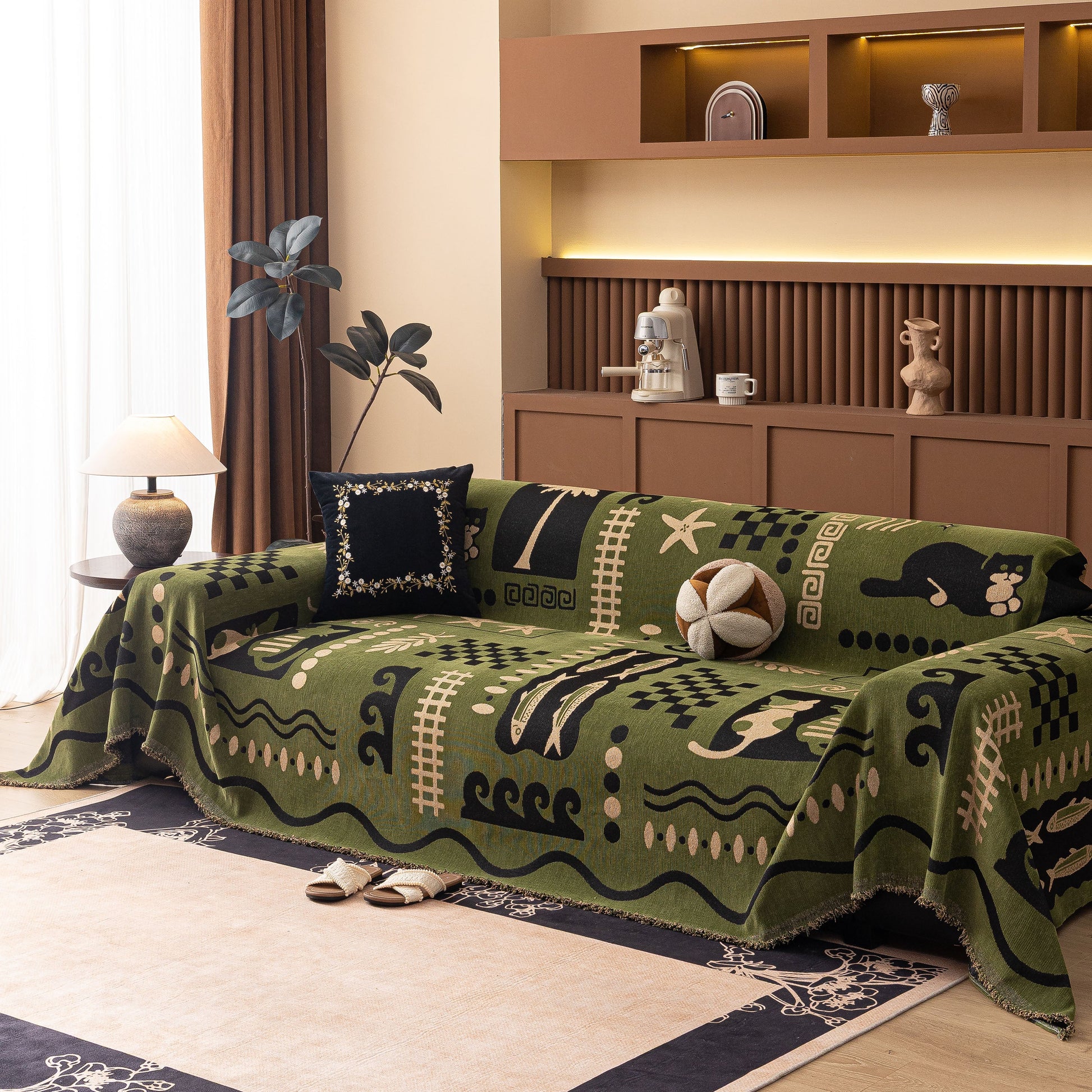 Made from a substantial, high-quality chenille, this cover combines a luxuriously soft feel with dependable durability. It drapes effortlessly over your furniture, acting as a formidable shield against daily wear, spills, and pet hair. More than just a sofa protector, its generous cut and non-fitted design make it a truly versatile piece, easily repurposed as a statement bedspread, a large blanket, or even a decorative wall tapestry.