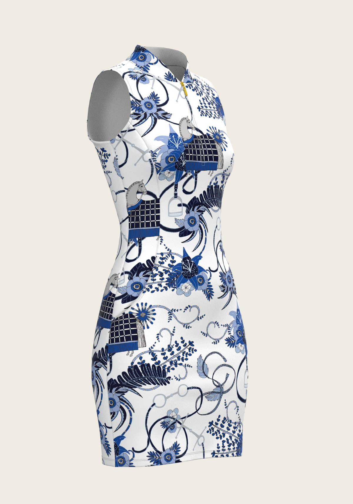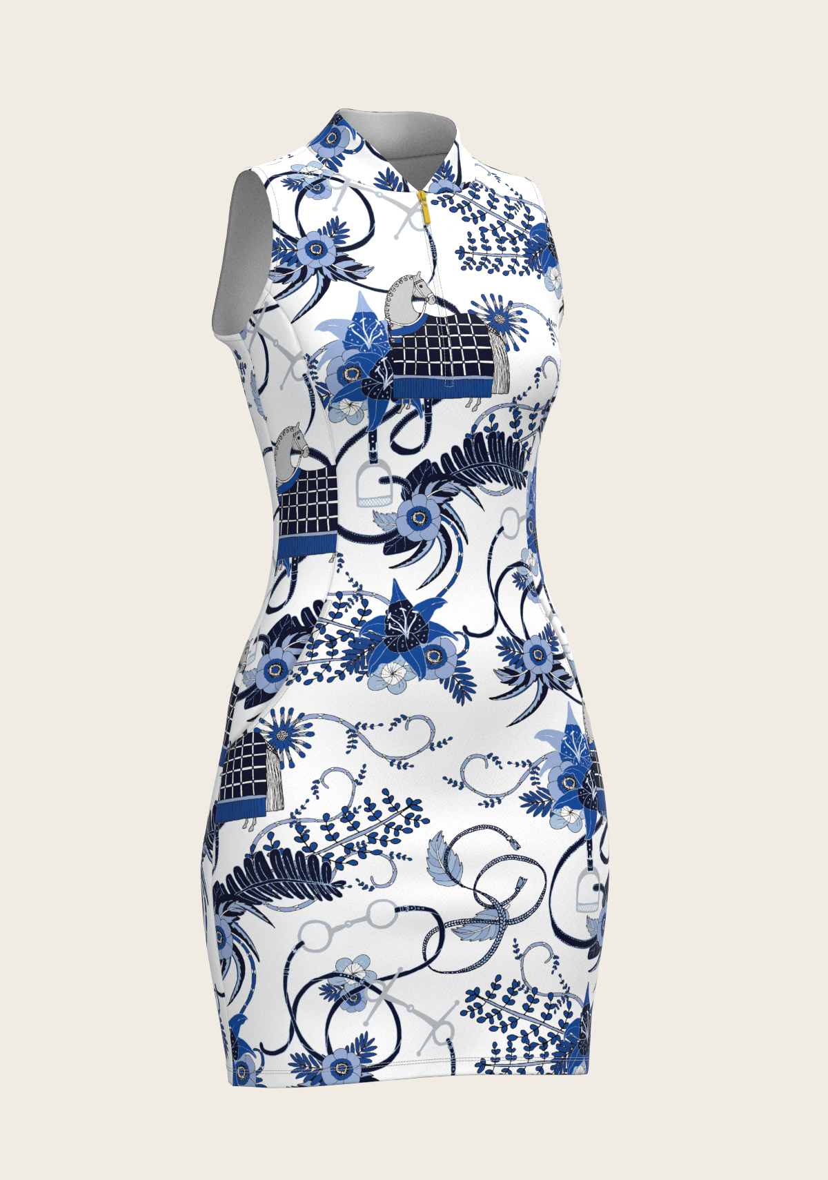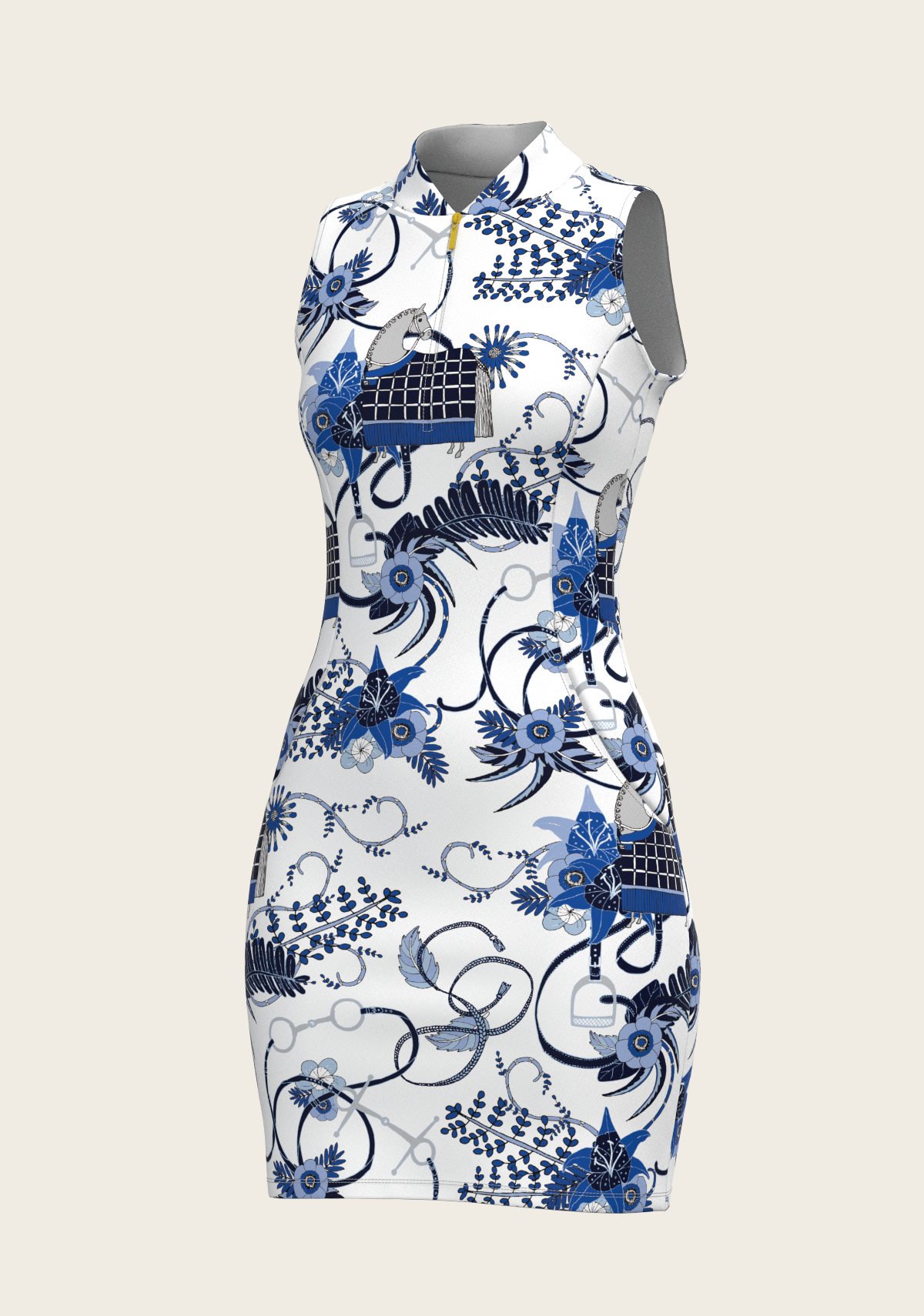 Botanical Blue on White Golf Dress
