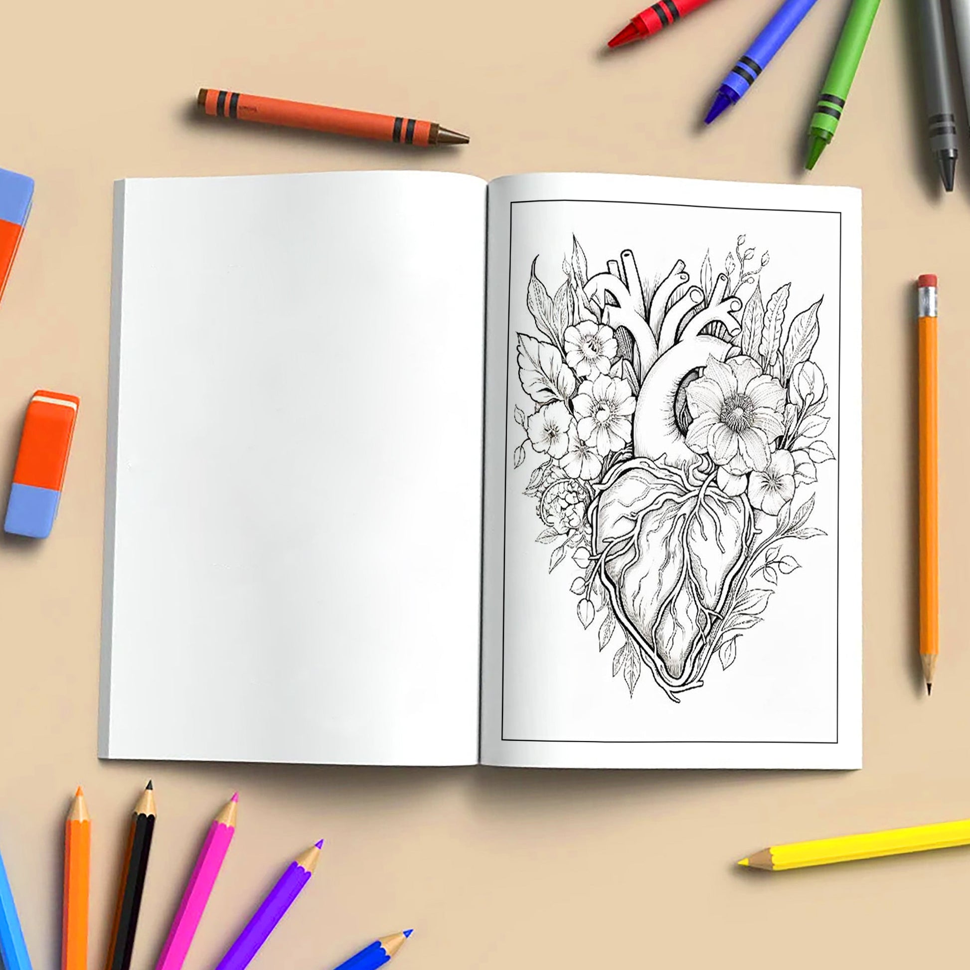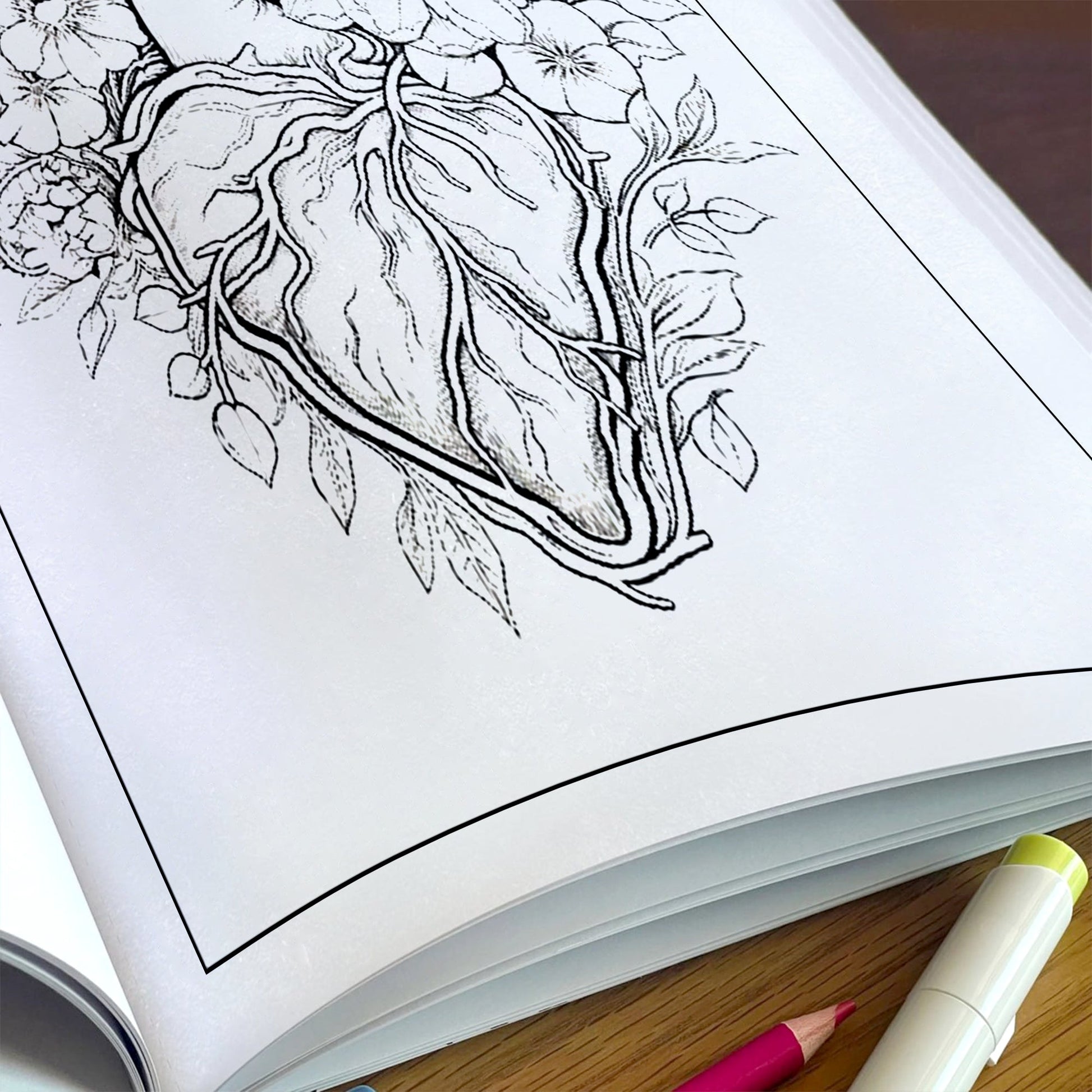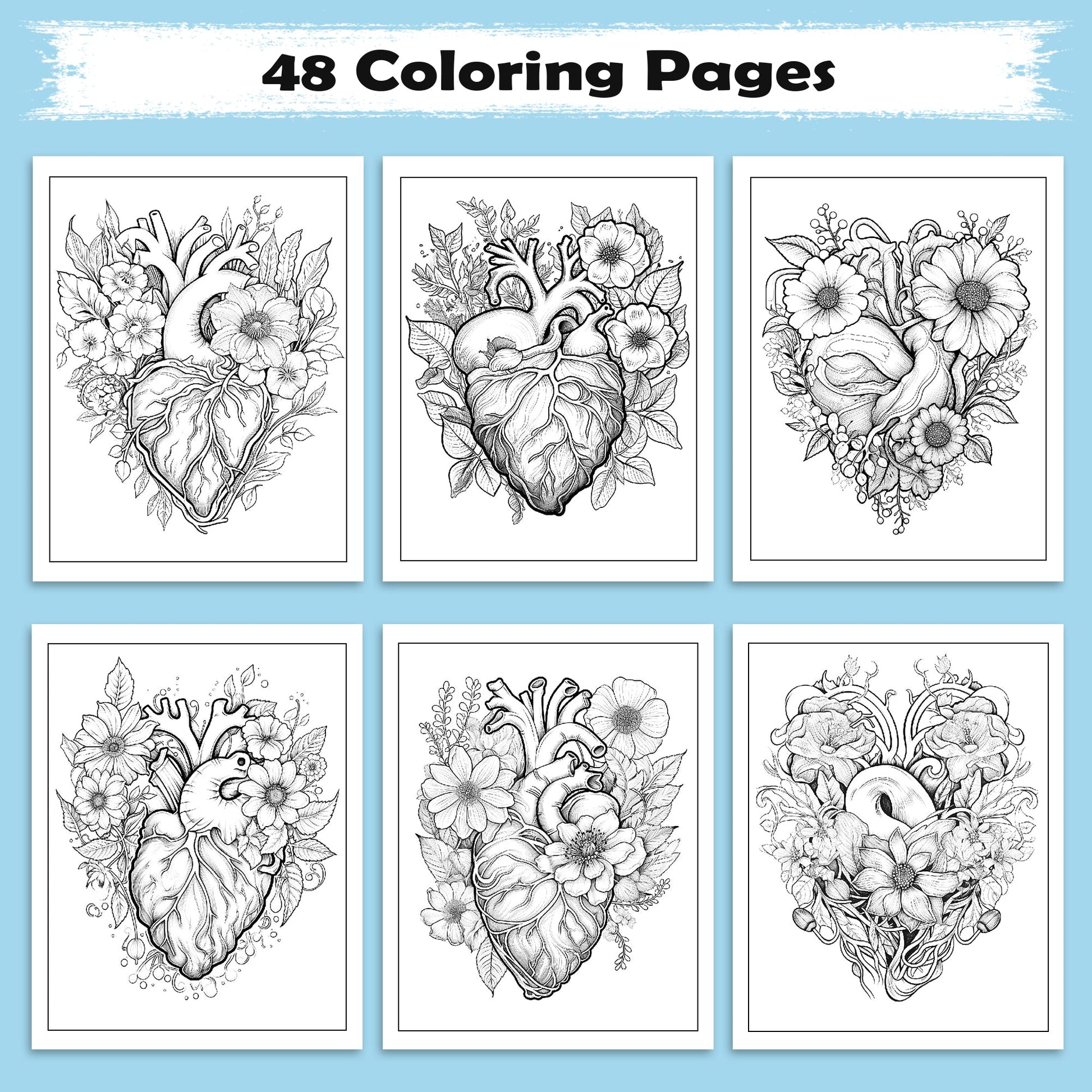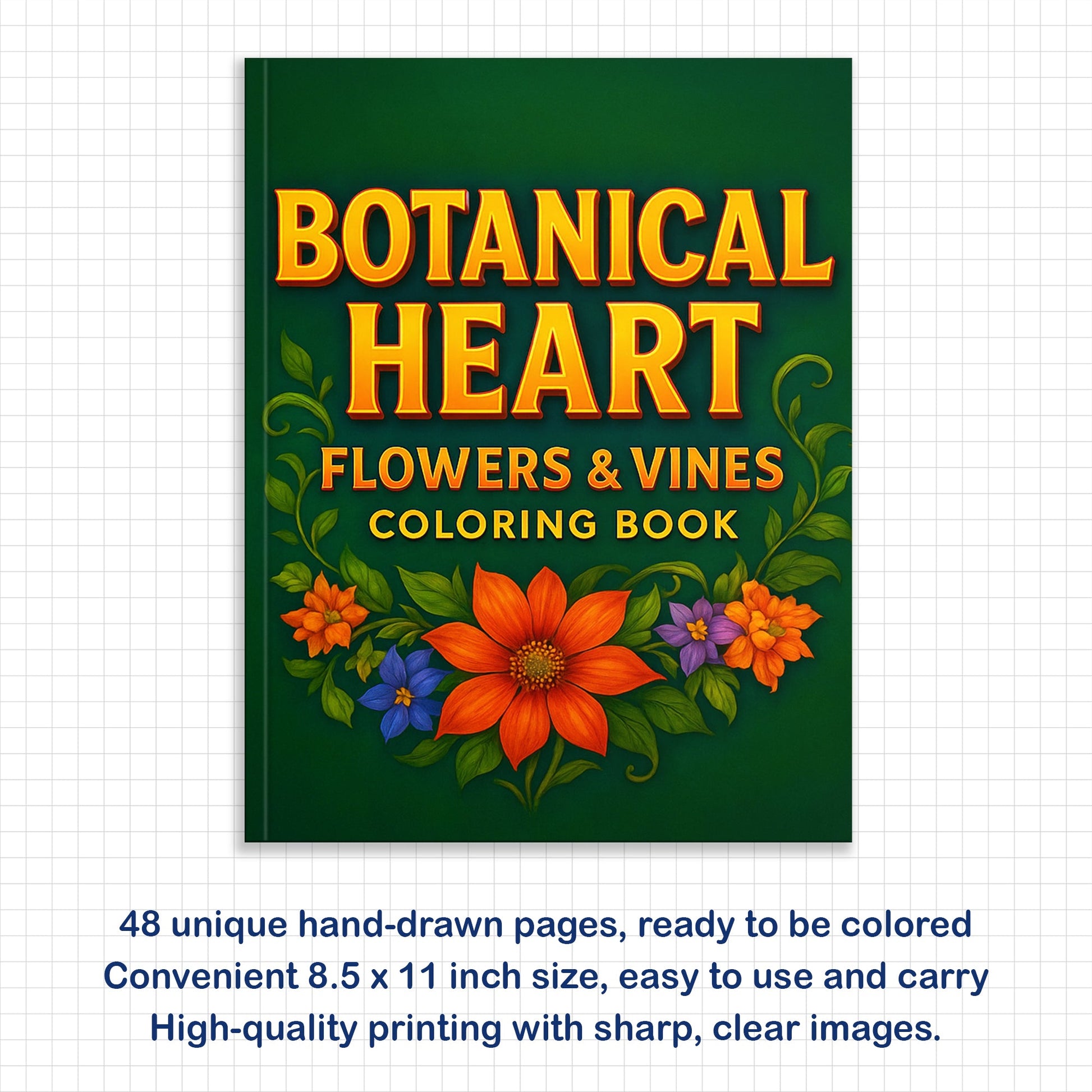 Botanical Heart Coloring Pages – 48 Pages – Beautiful Flowers, Vines, Nature – For Adults